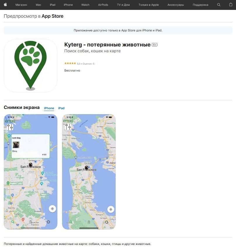 Приложение iOS для поиска животных