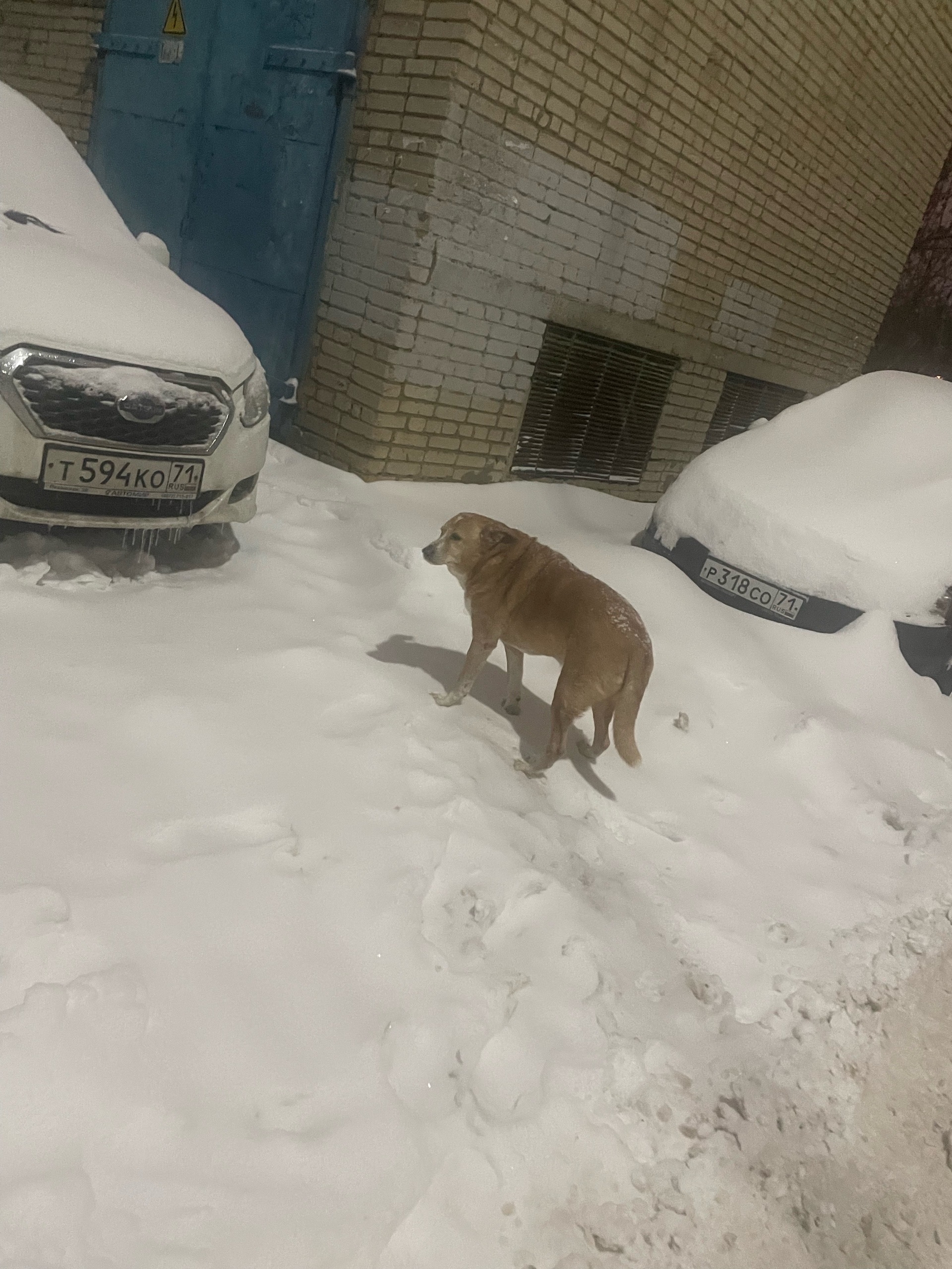 Спустилась выше от еды, пёс (кобель) есть отказался, поплелся за мной, в подъезд не зашел, сильно дрожит