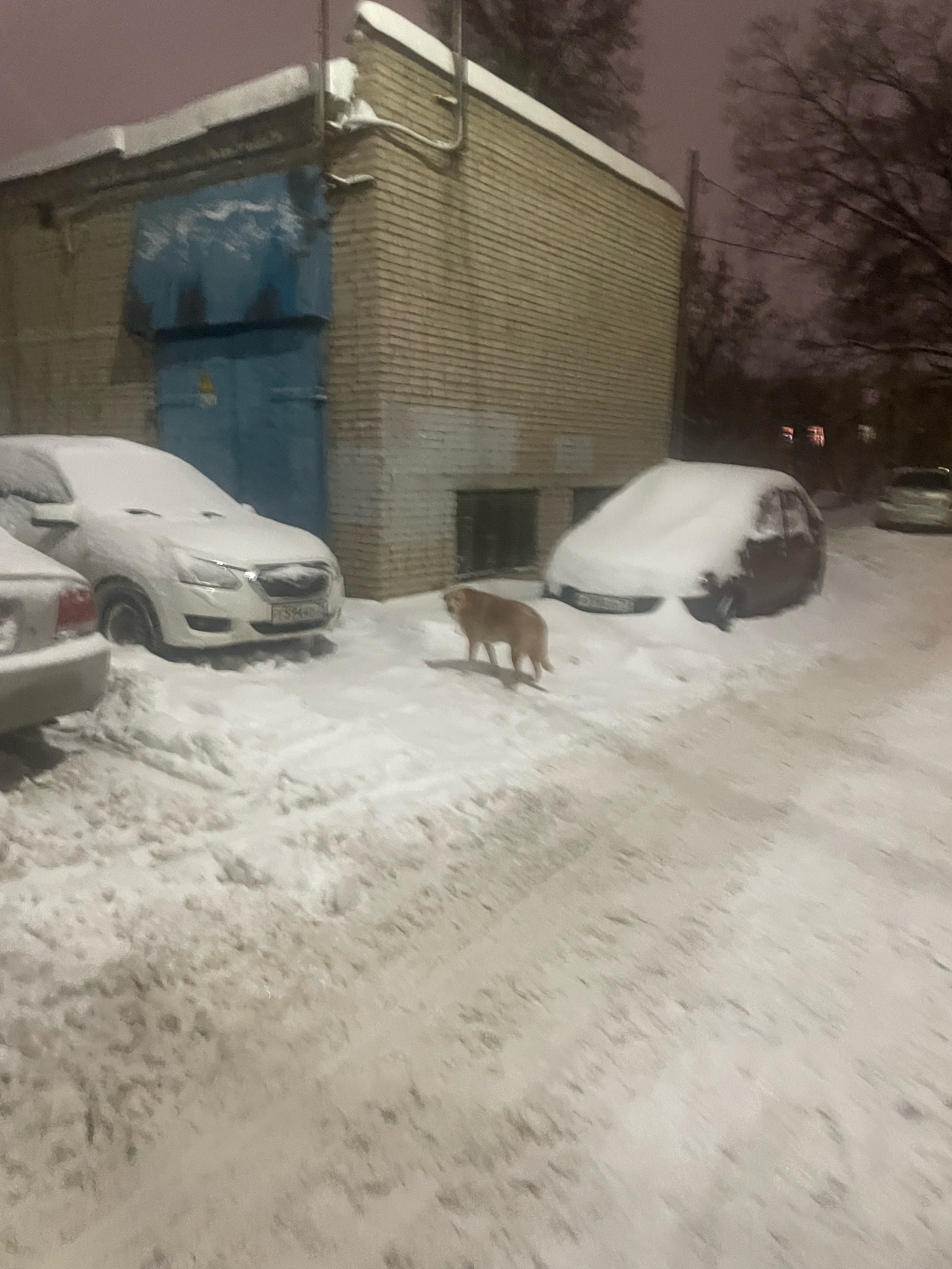 Пугливый , хотела подтянуть в подъезд согреться , отпрыгнул от меня