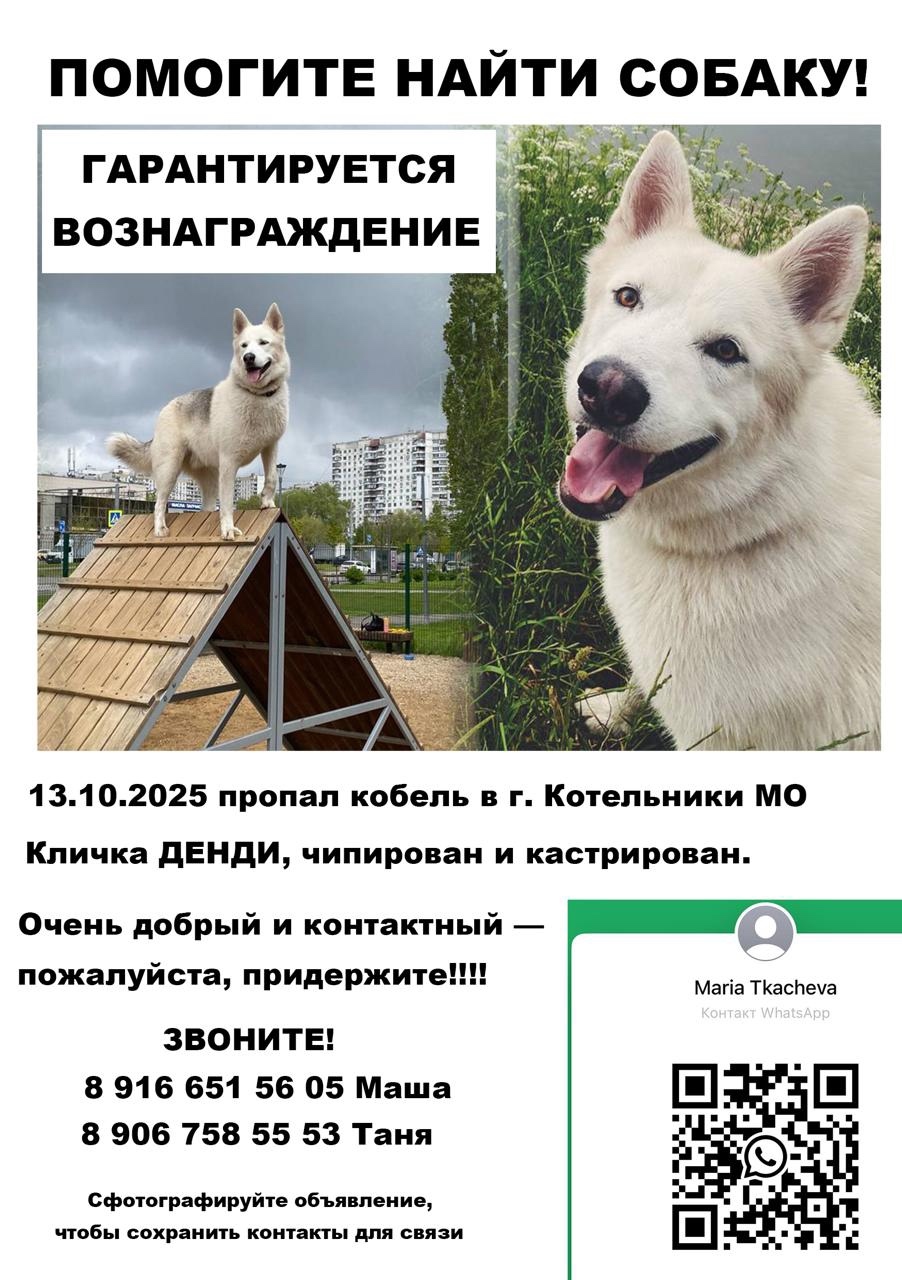 Пожалуйста, разместите! Пропал кобель, Котельники МО Кличка..