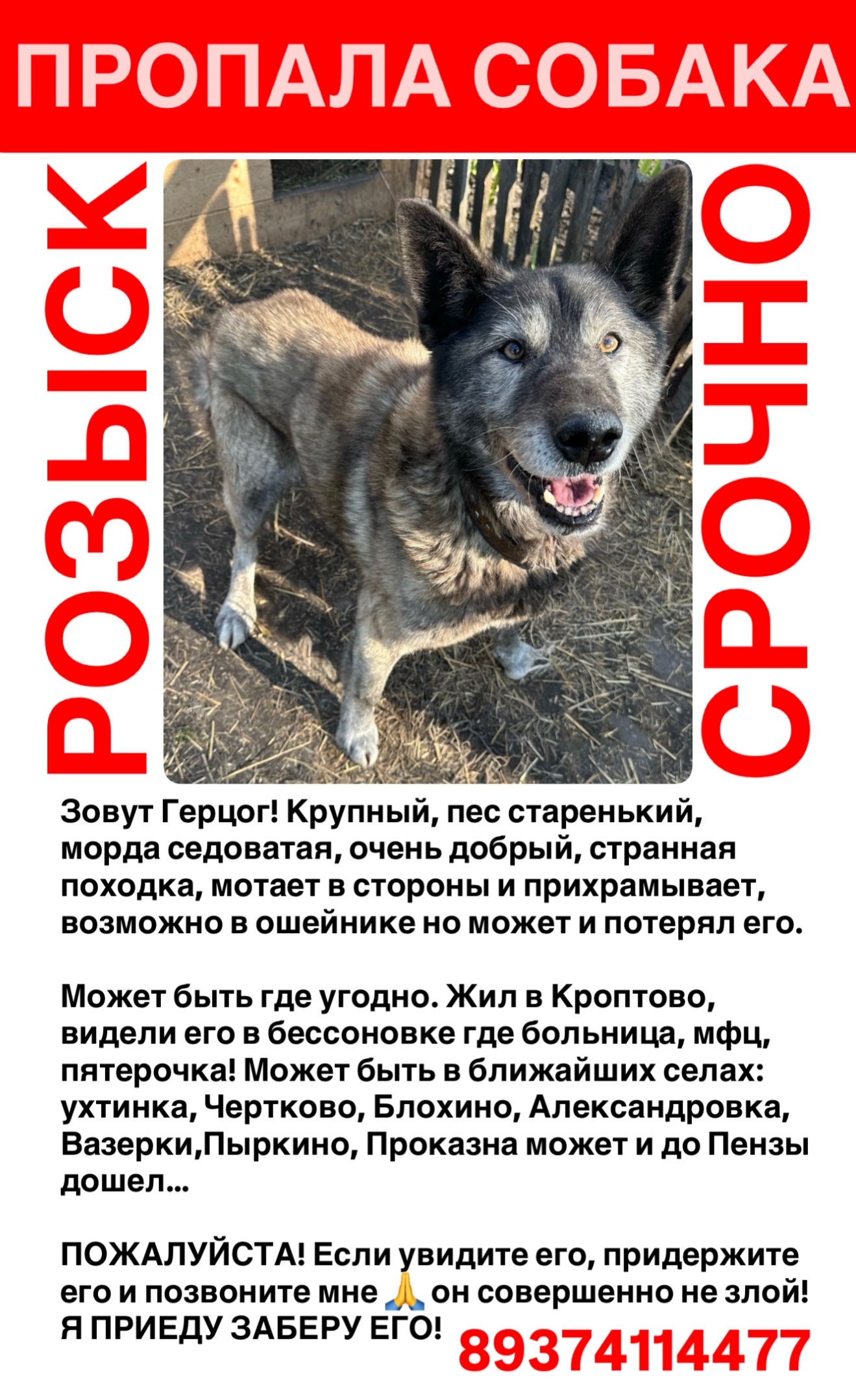 Пожалуйста важна любая информация🙏 если вы вдруг увидите его, придержите пожалуйста и позвоните мне, я сразу приеду🙏🙏🙏🙏