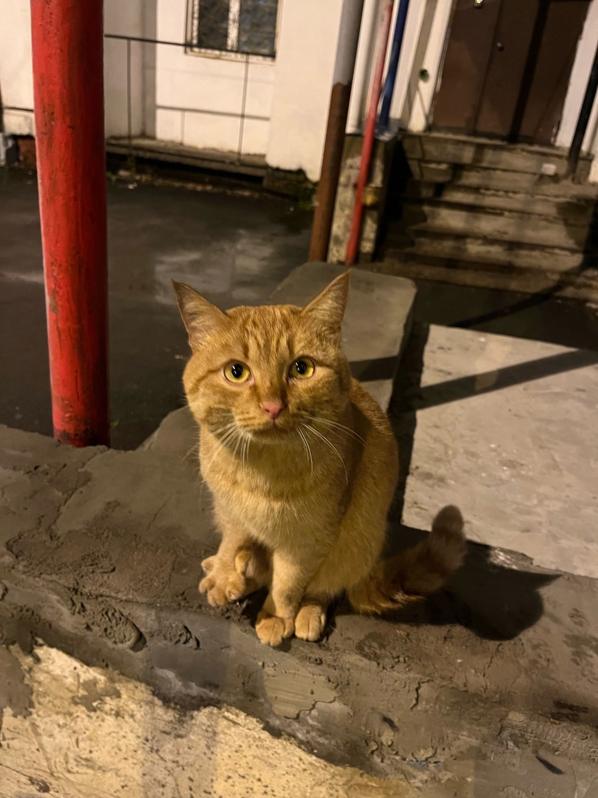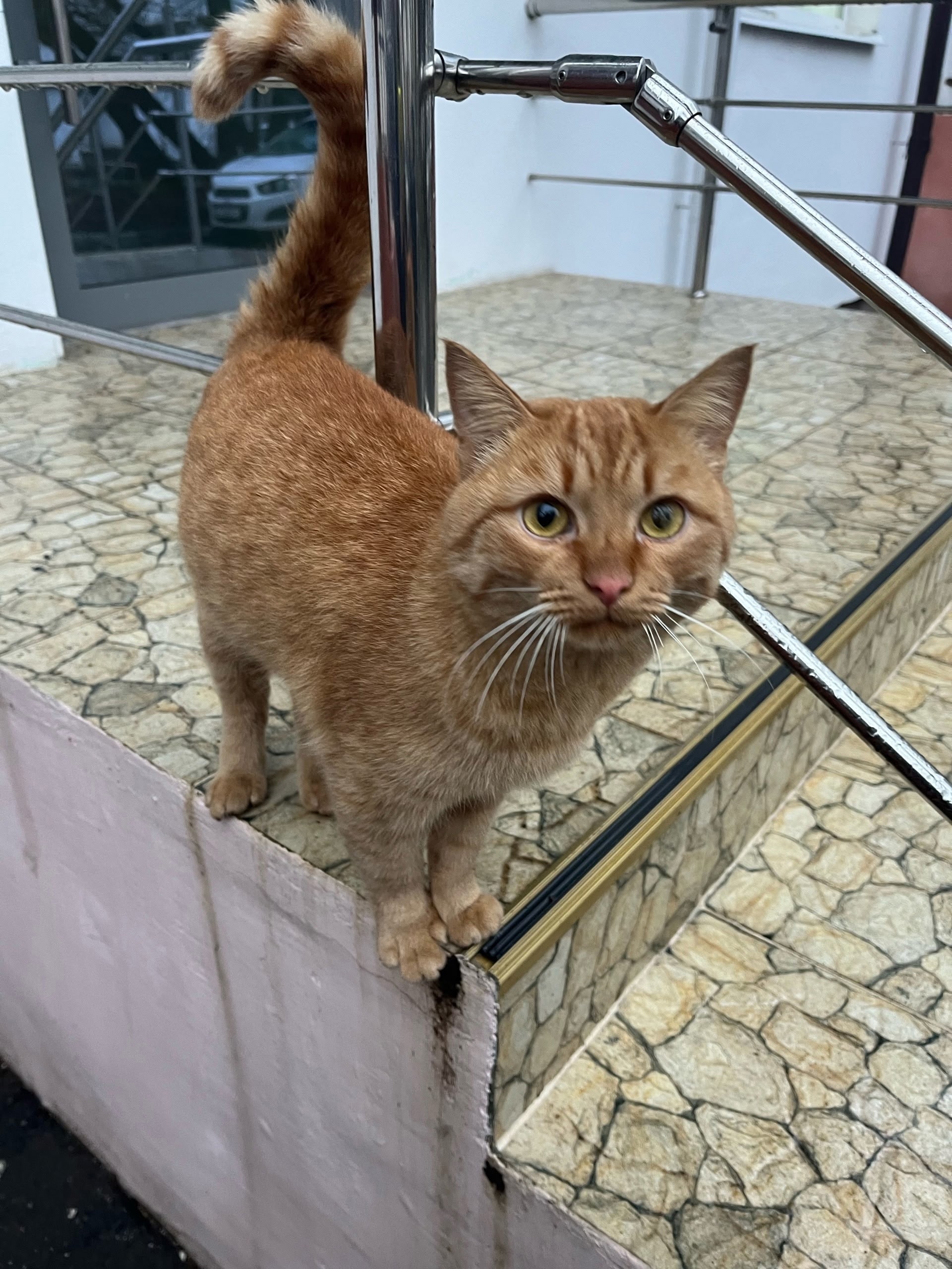 Рыжий котик ,появился неделю назад на улице Панфилова 19‼️Визуально чистый,здоровый,очень ласковый,видно что домашний,идет на контакт ❤️Может кто-то потерял ???