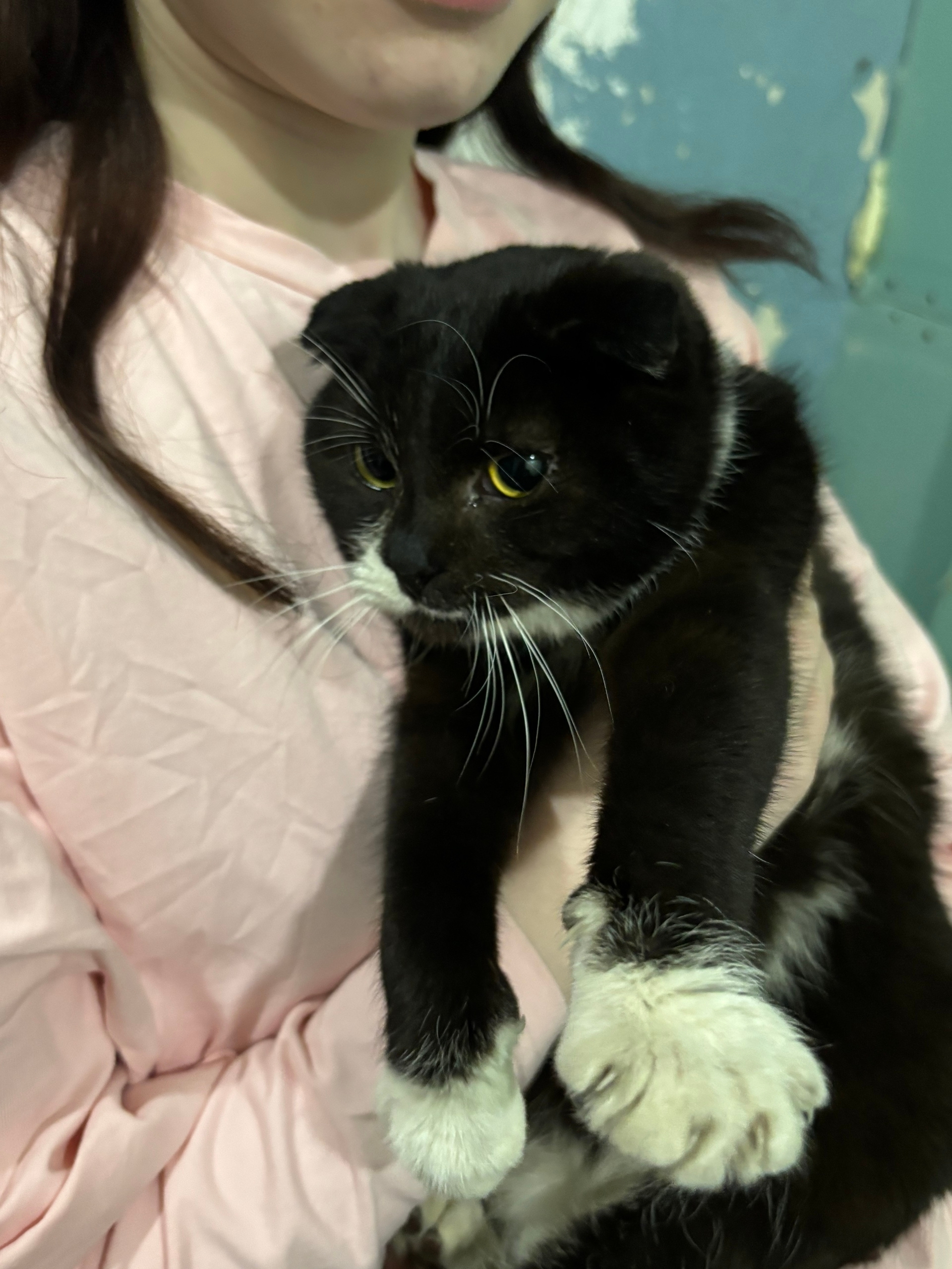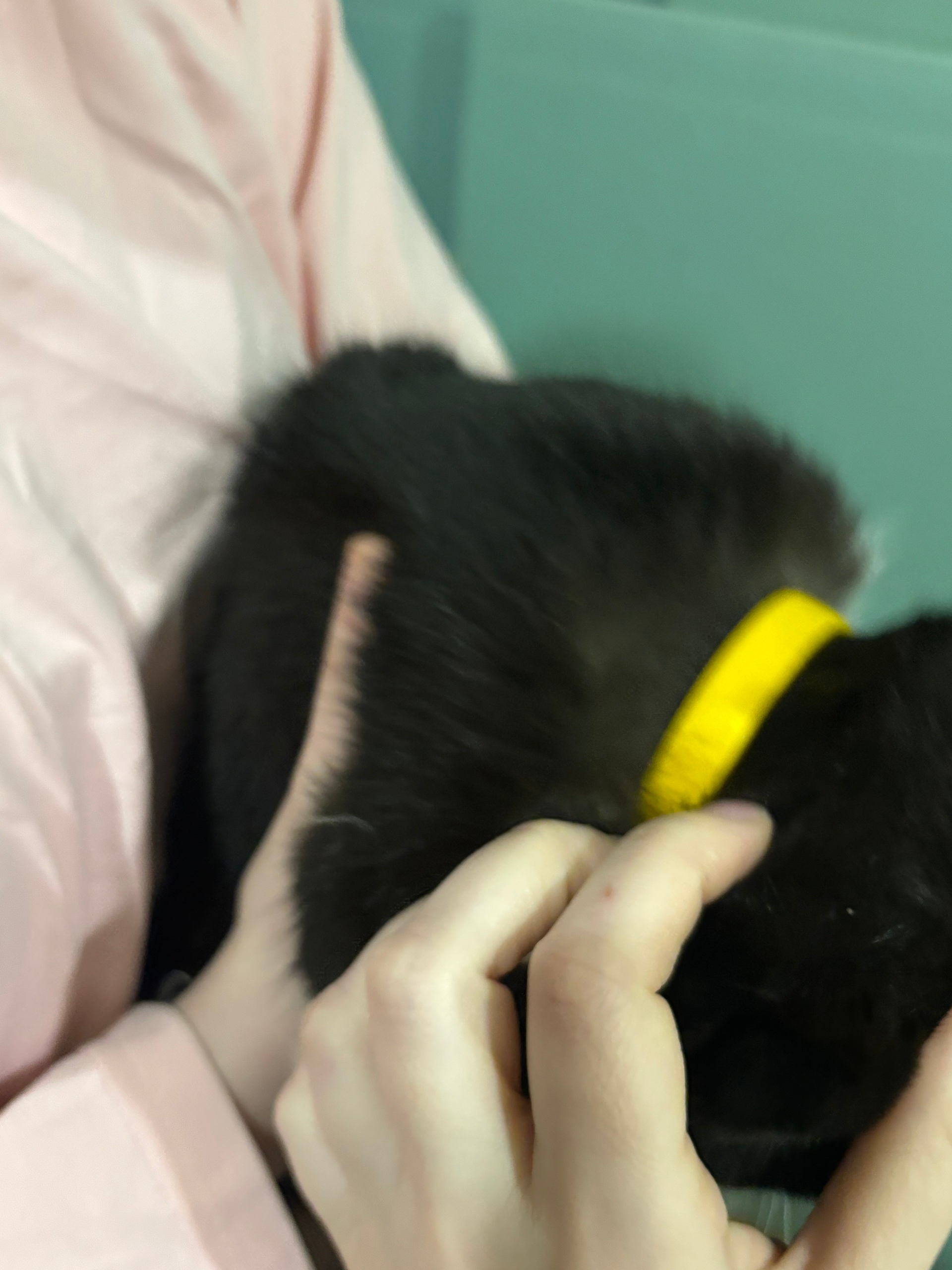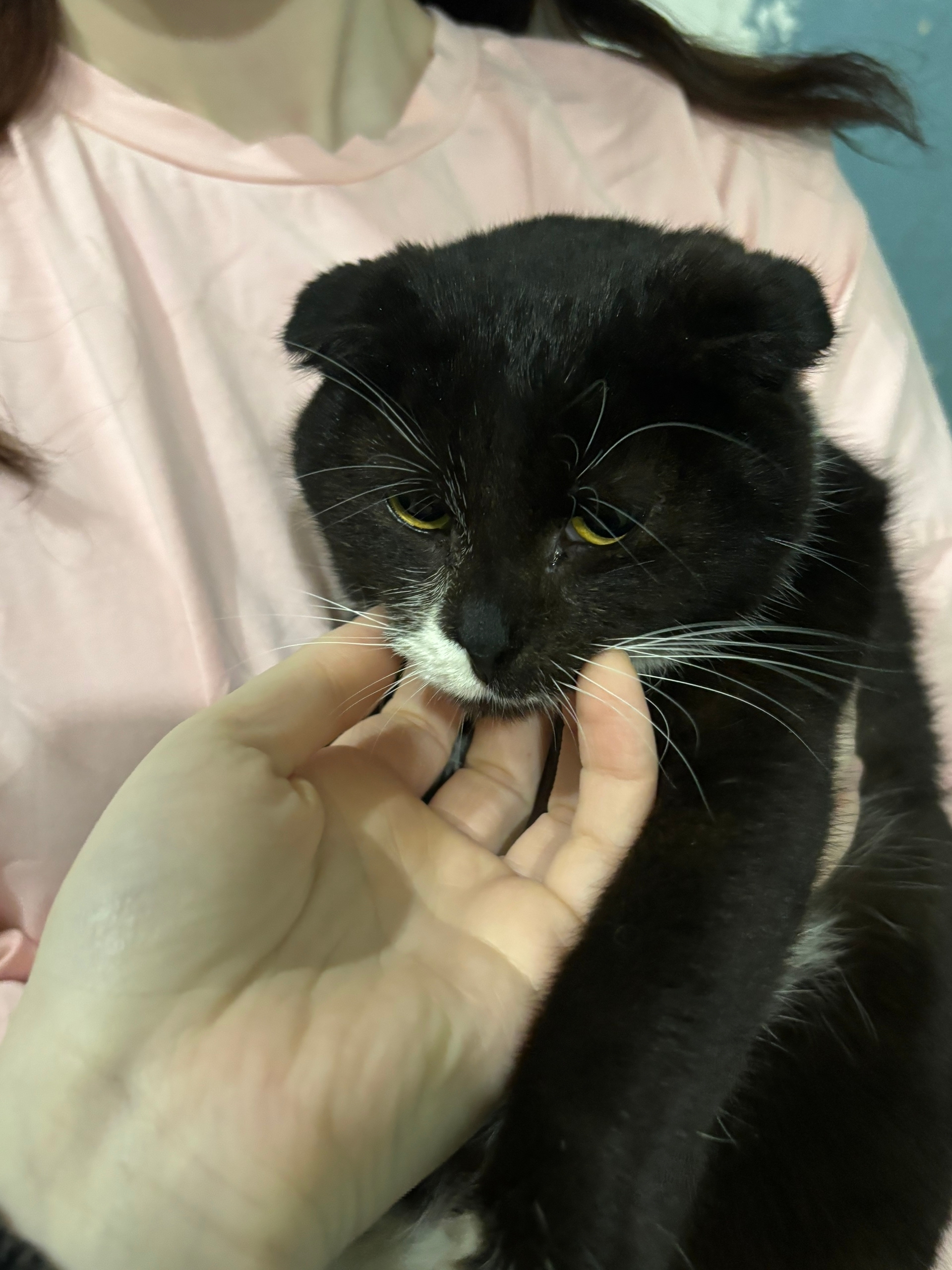 Прибилась вислоухая кошечка в ярко-желтом ошейнике. Явно..