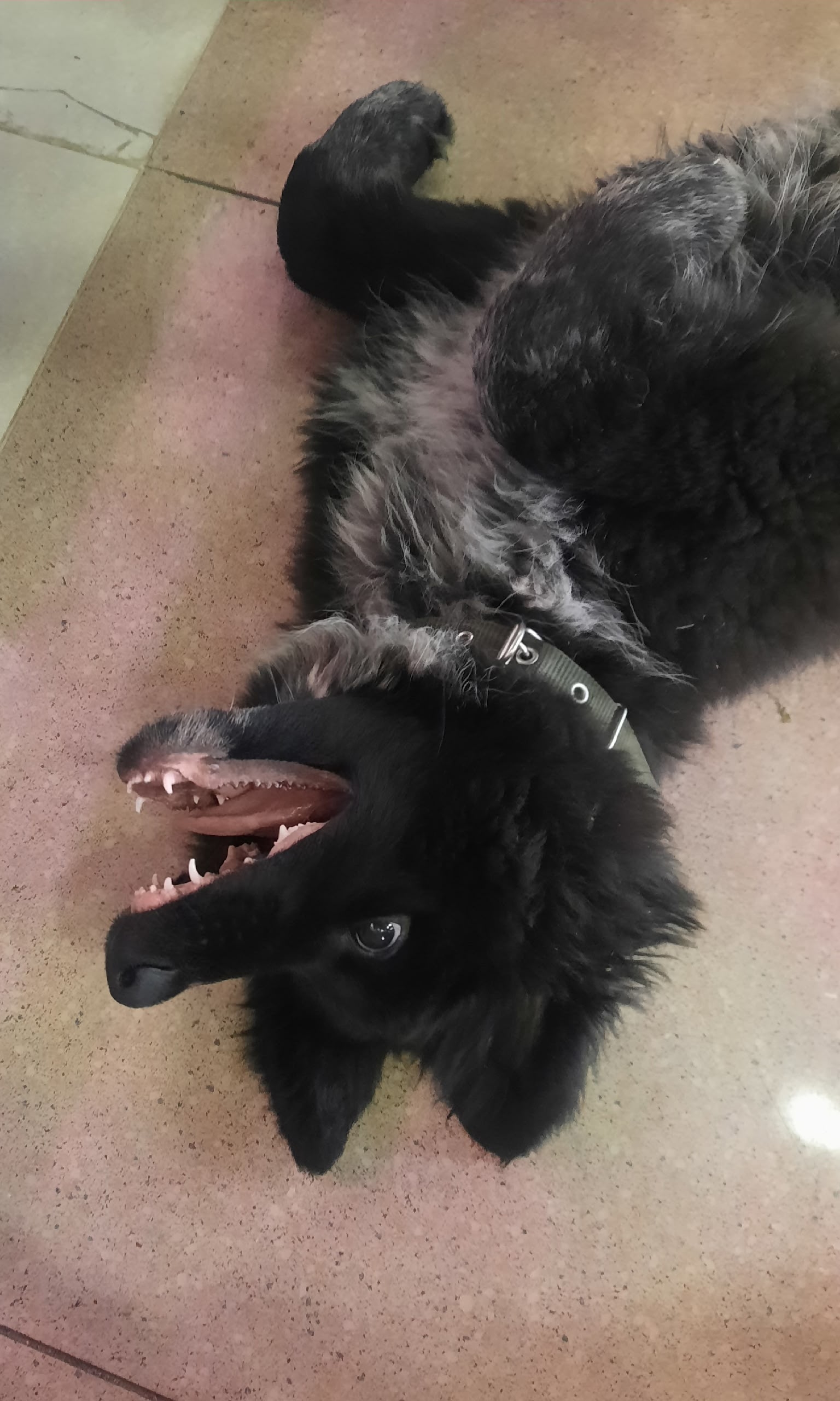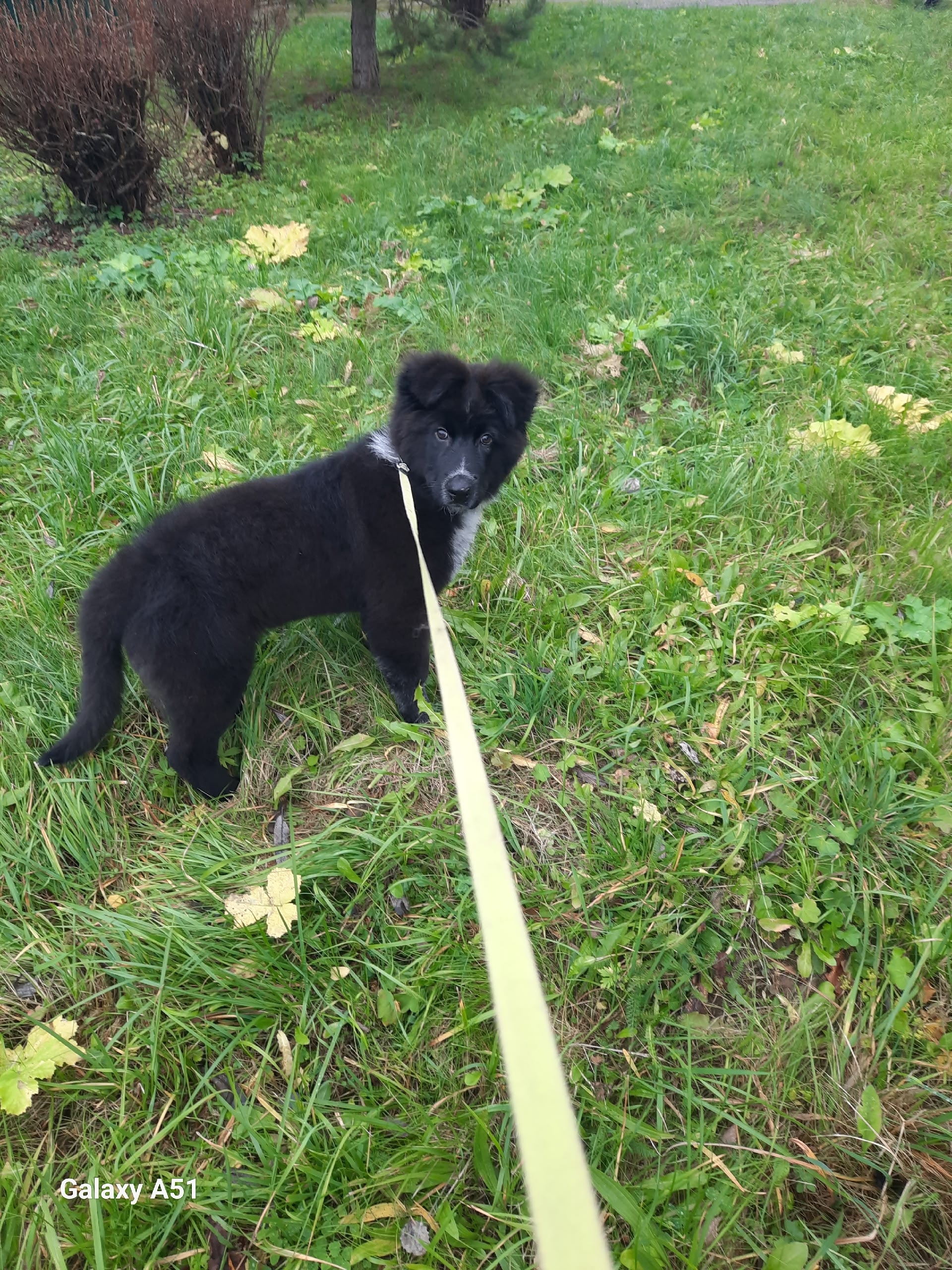 Очень умный! Команды учит бысто. Поводок 5+. Будет крупненький.
