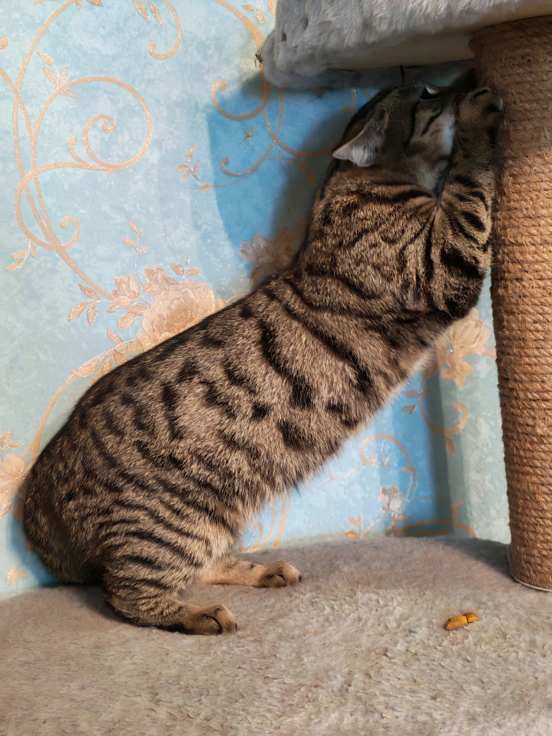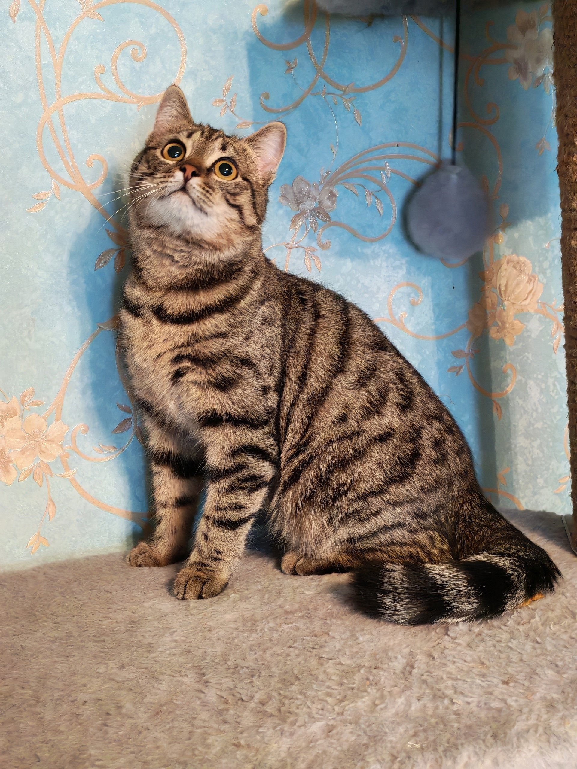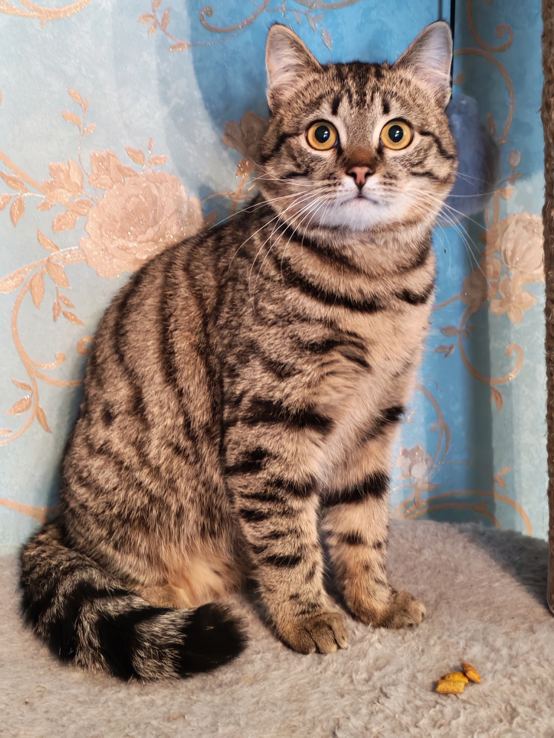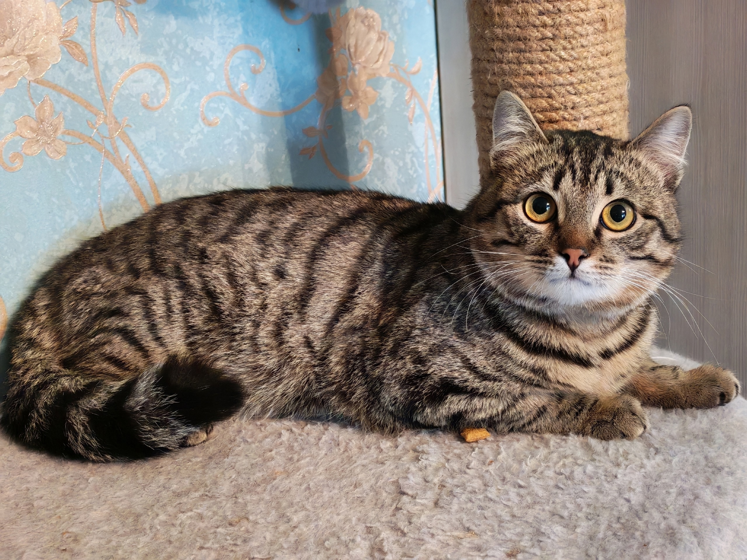 Очень хороший котик! И красивейший – явно прослеживается порода (окрас, полосы, большие медовые глаза, хвост “как у енота”)