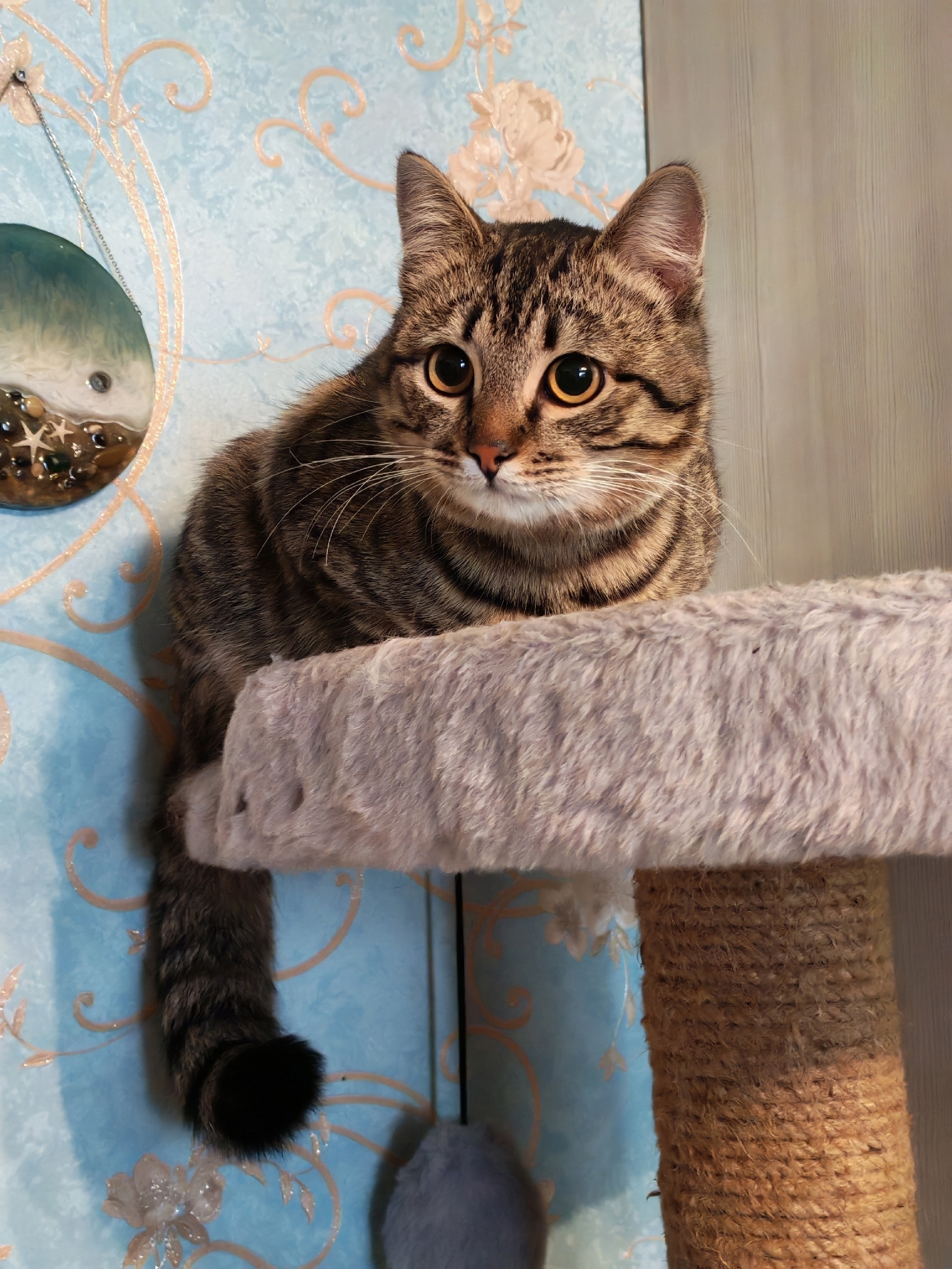А котишка молоденький, очень ласковый, игривый, дружелюбный! Воспитанный – знает лоток, когтеточку!