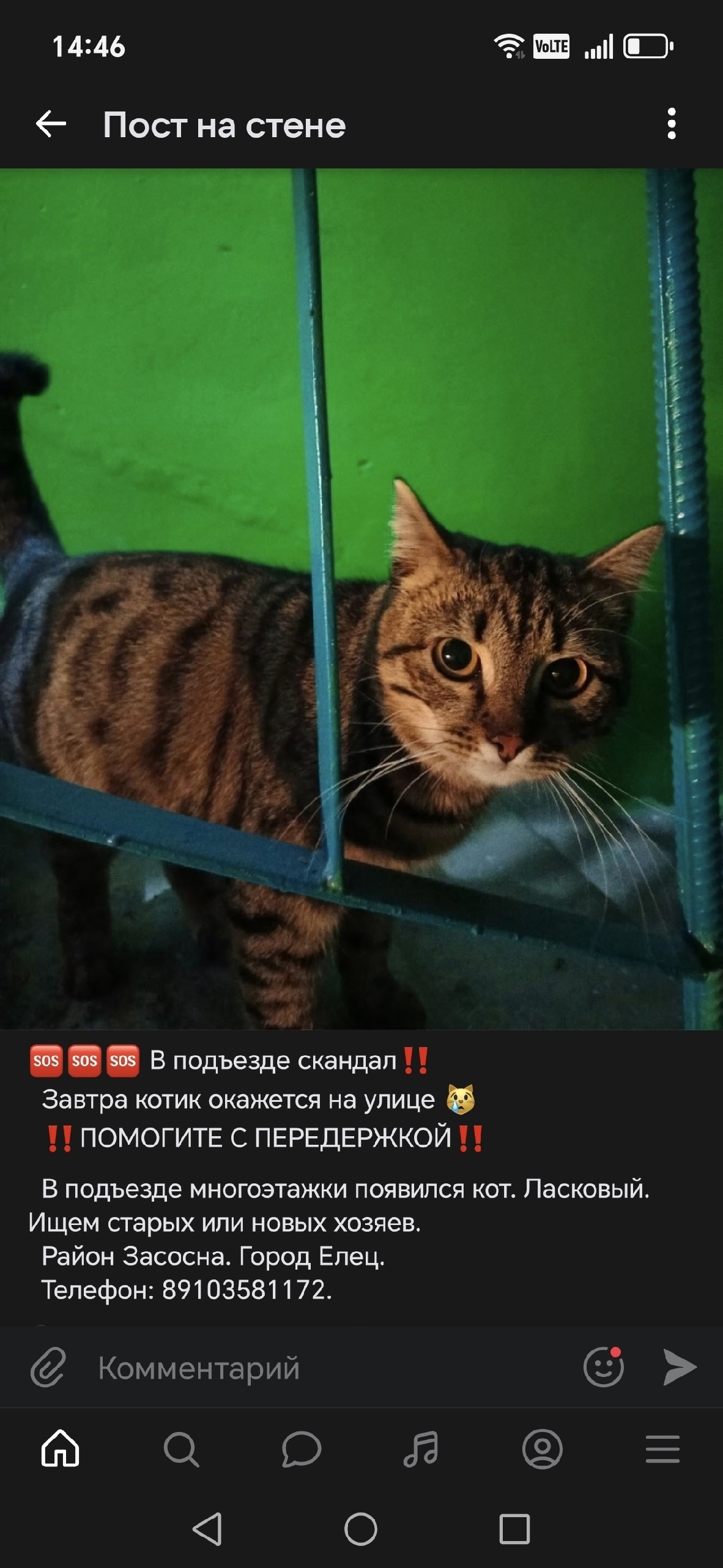 Кто-то же выбросил?!?! Его и не искал никто – больше недели просидел в коробке в подъезде, невольно став причиной конфликтов между соседями… Периодически мелькали о нëм посты в группах города: прибился, может кто ищет… Ти-ши-на. Как будто с неба упал…😿