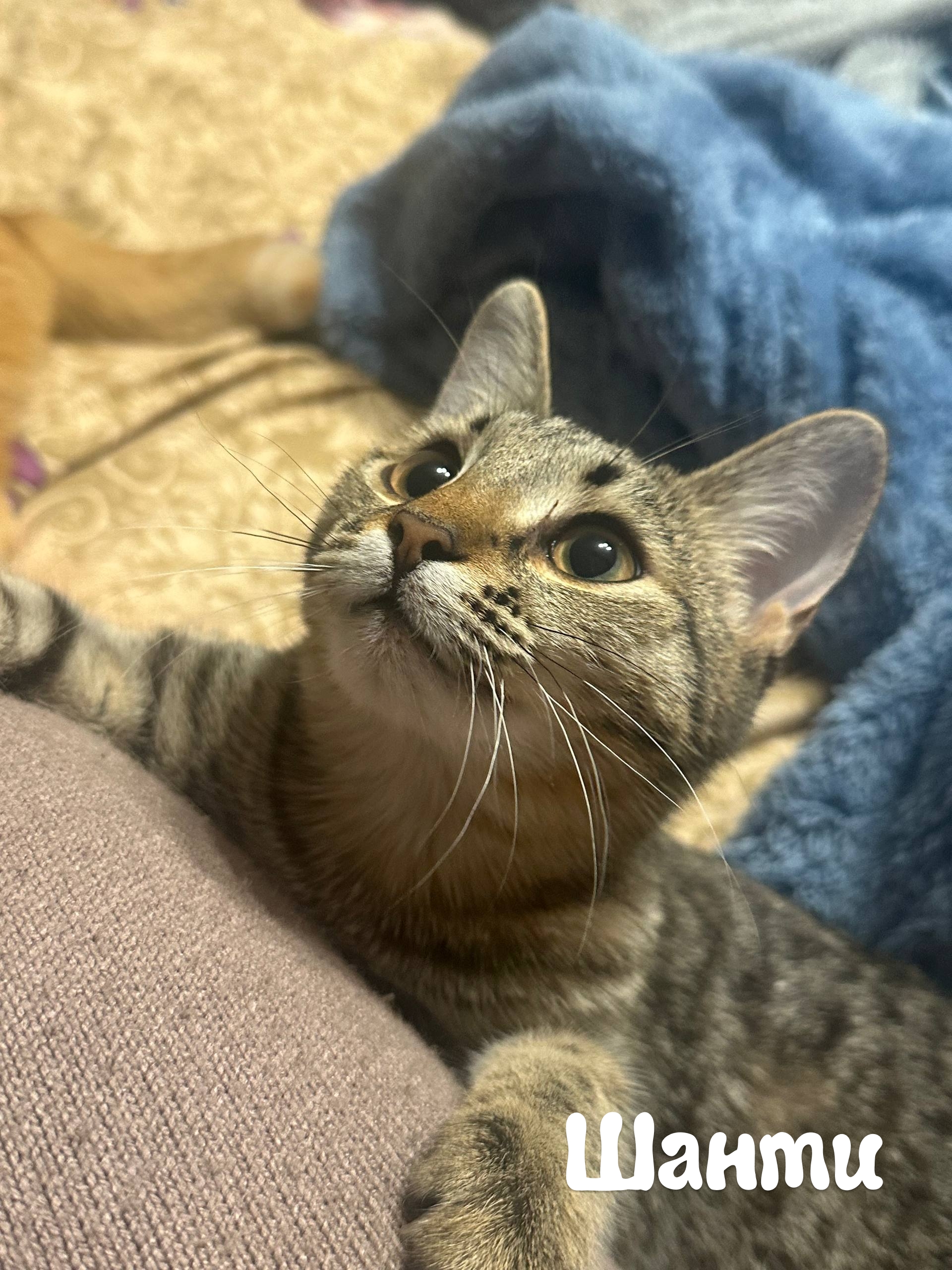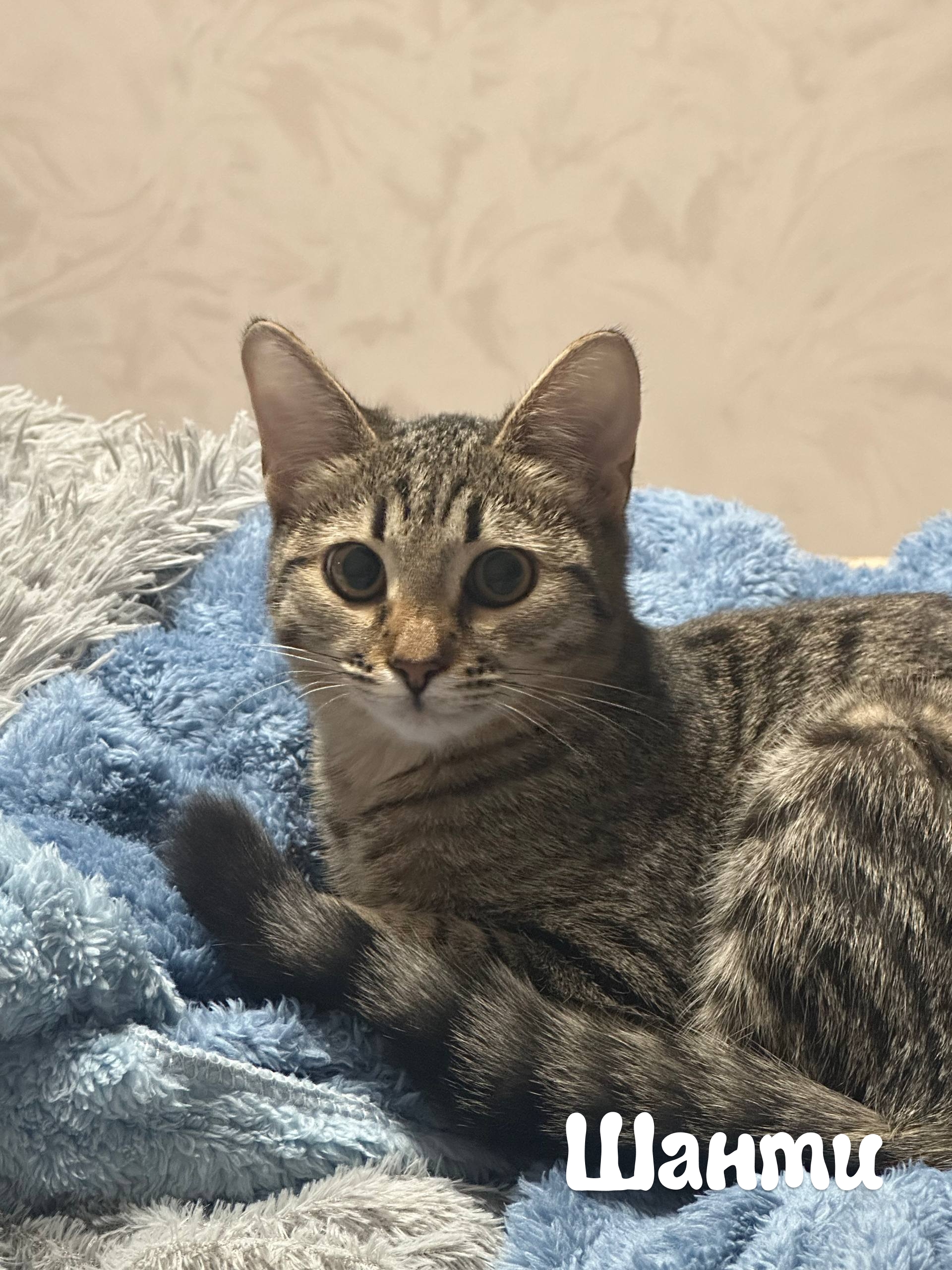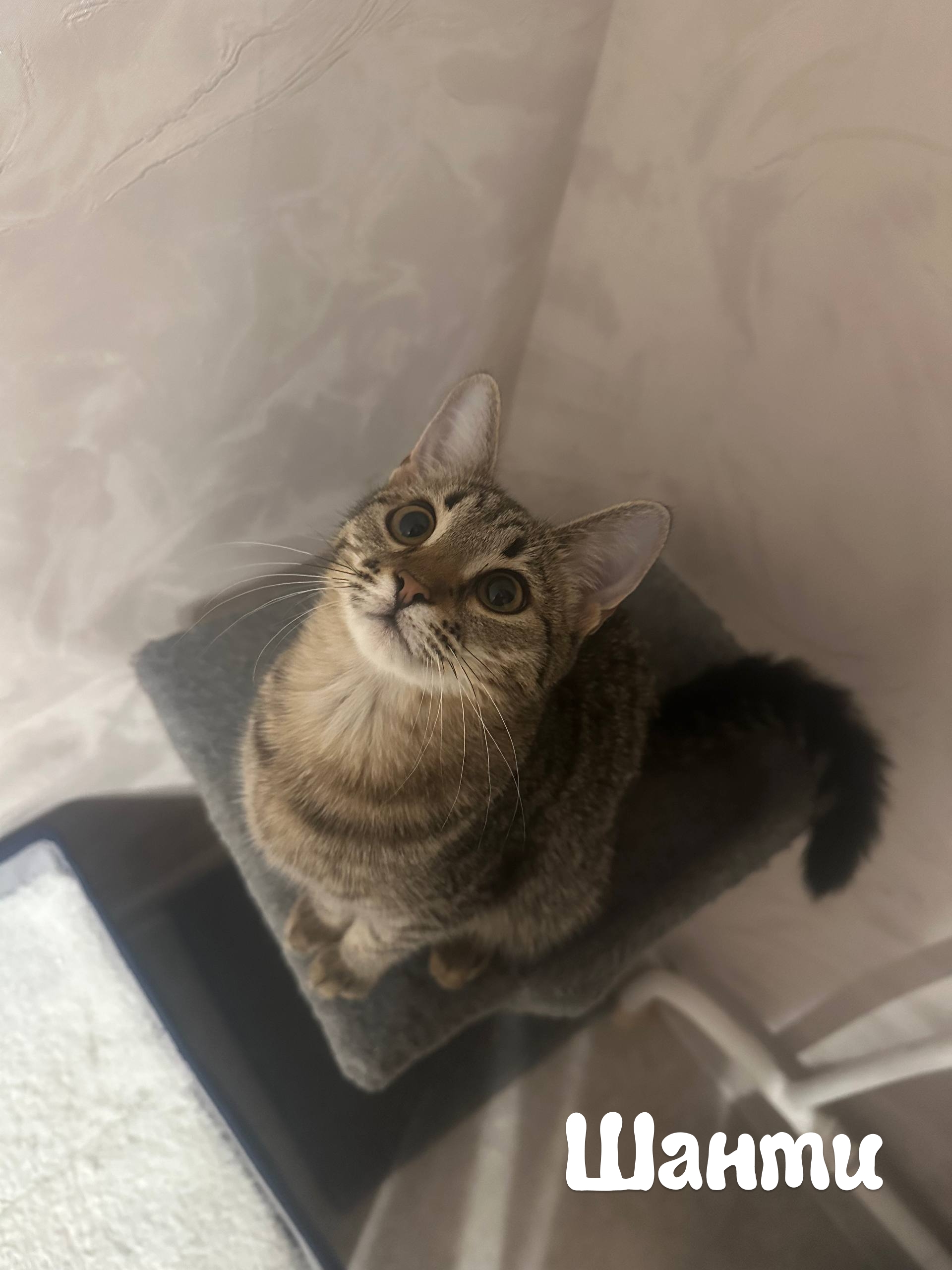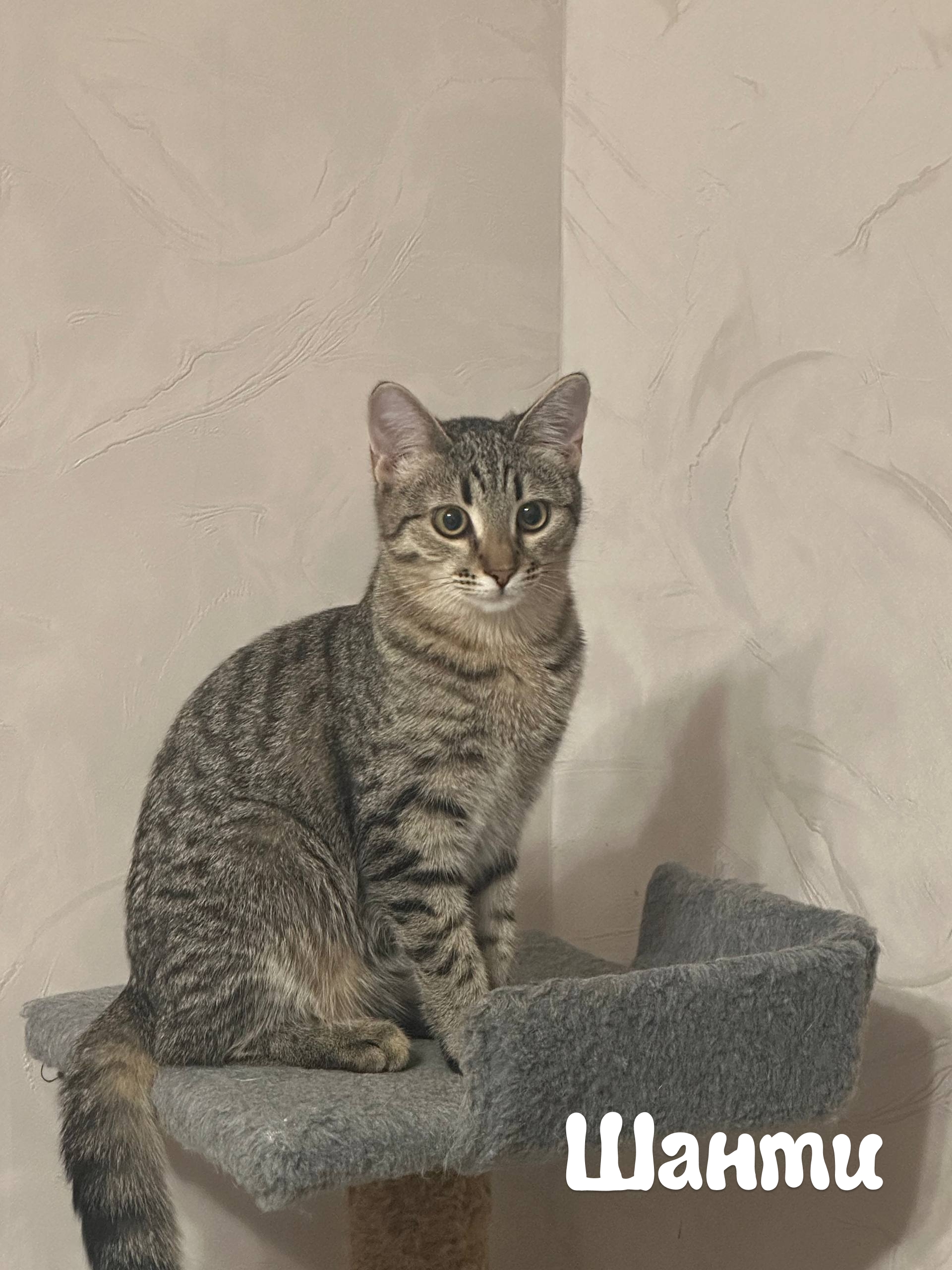Шанти (серая) любвеобильная до мозга и костей – пока вы ее не почухаете, малышка от вас не отстанет. Вырастет прекрасным компаньоном во время отдыха.