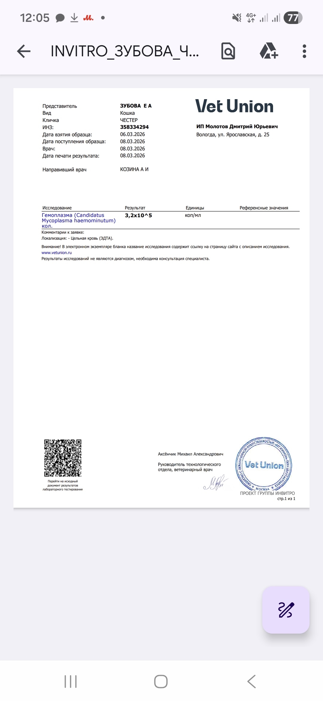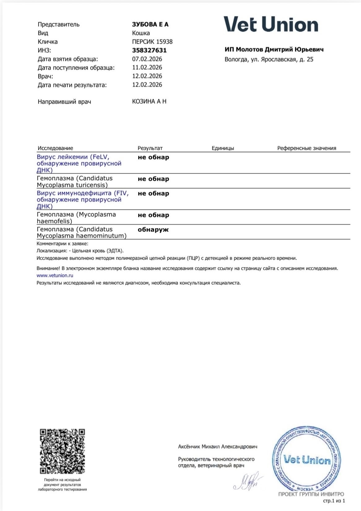 Вы уже знаете эту грустную историю. Красивый молодой кот Персик (теперь Честер) в одночасье стал никому не нужен. У его прежних хозяев родился ребёнок, случился переезд… В общем, «важные причины» оказались важнее верного друга. В группе о пристрое животных появилось объявление – заберите или кота ждет улица. Пришлось оперативно забирать, потом клиника, а там диагноз — гемоплазмоз ❗️Это страшная инфекция, которая разрушает кровь, вызывая анемию. Мы объявили сбор, и благодаря вашей помощи, мы смогли начать борьбу!