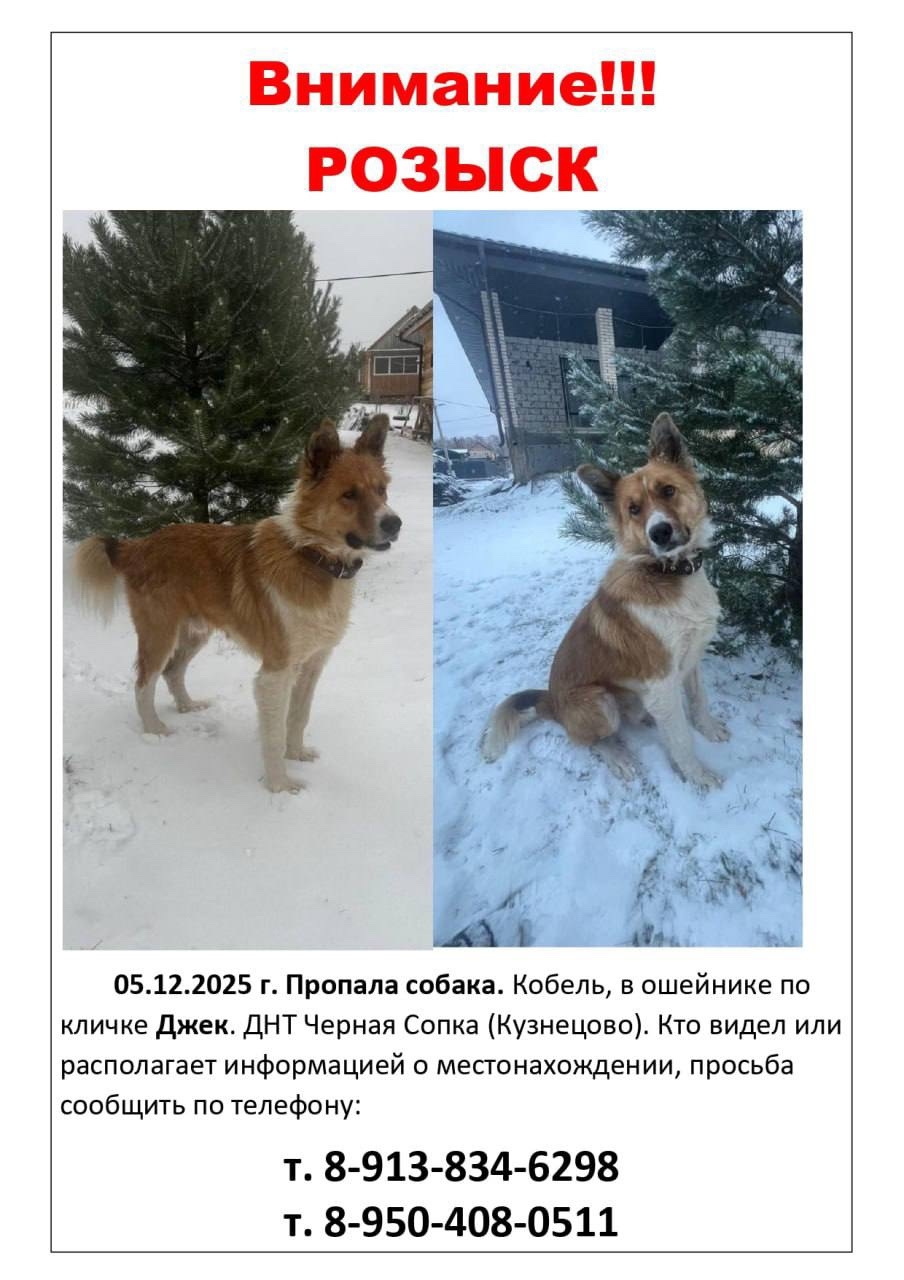 Пропал 05.12.2025 г. Кобель в ошейнике по кличке Джек. Днт Черная Сопка ( Кузнецово). Южный склон, Лукино, Зыково. Кто видел или располагает информацией сообщите.