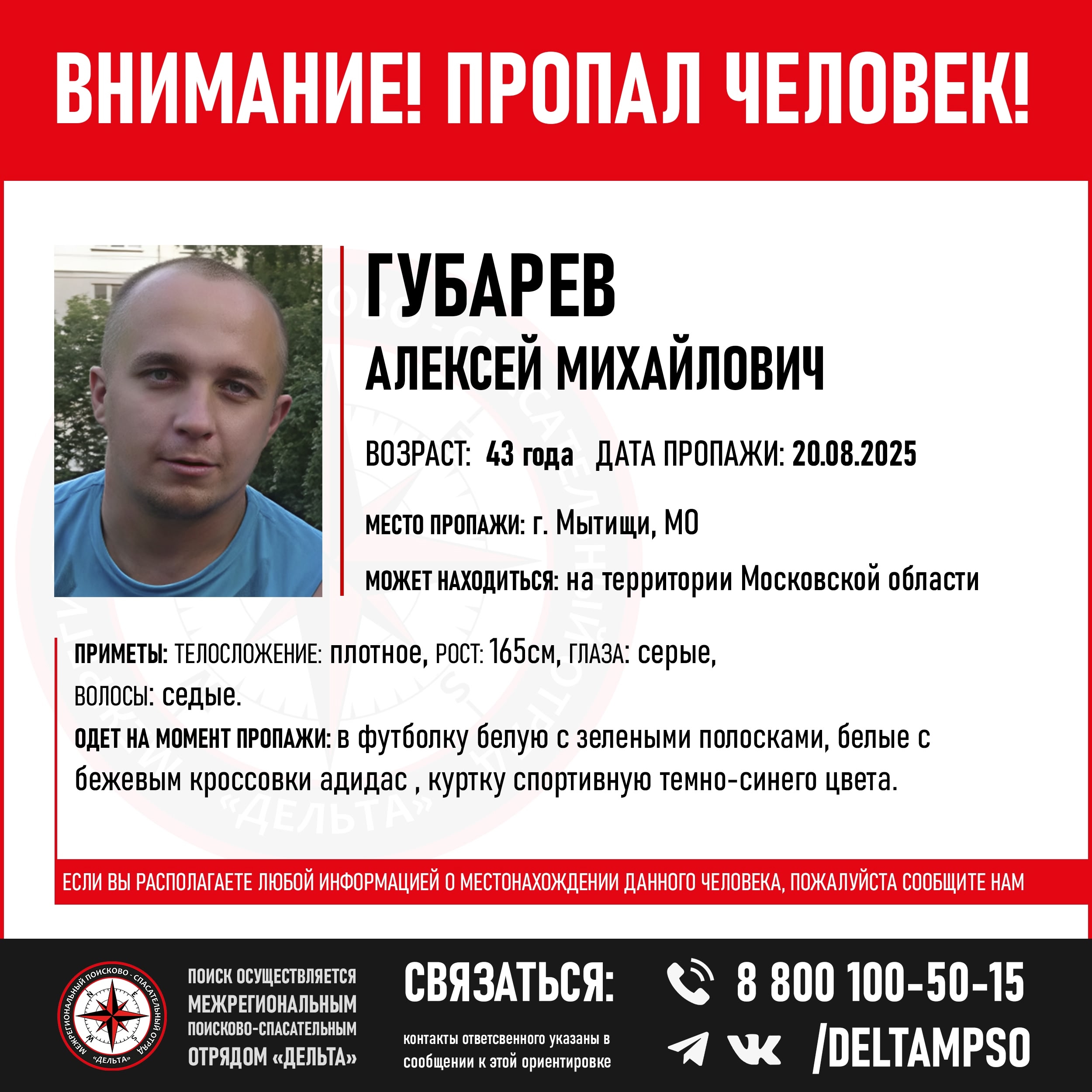 ПРОПАЛ ЧЕЛОВЕК! Губарев Алексей Михайлович. 43 года. Пропал: 20..