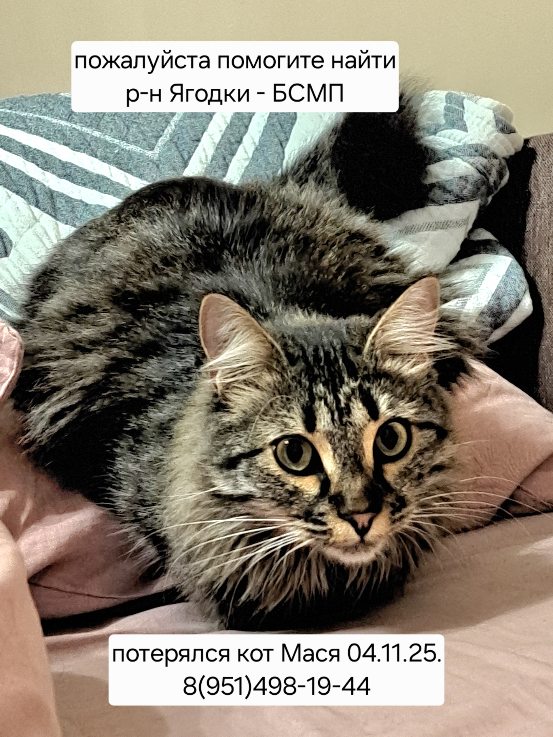 Пропал кот 04.11.2025г. отзывался на Масяню (Малец), не теряю надежды..