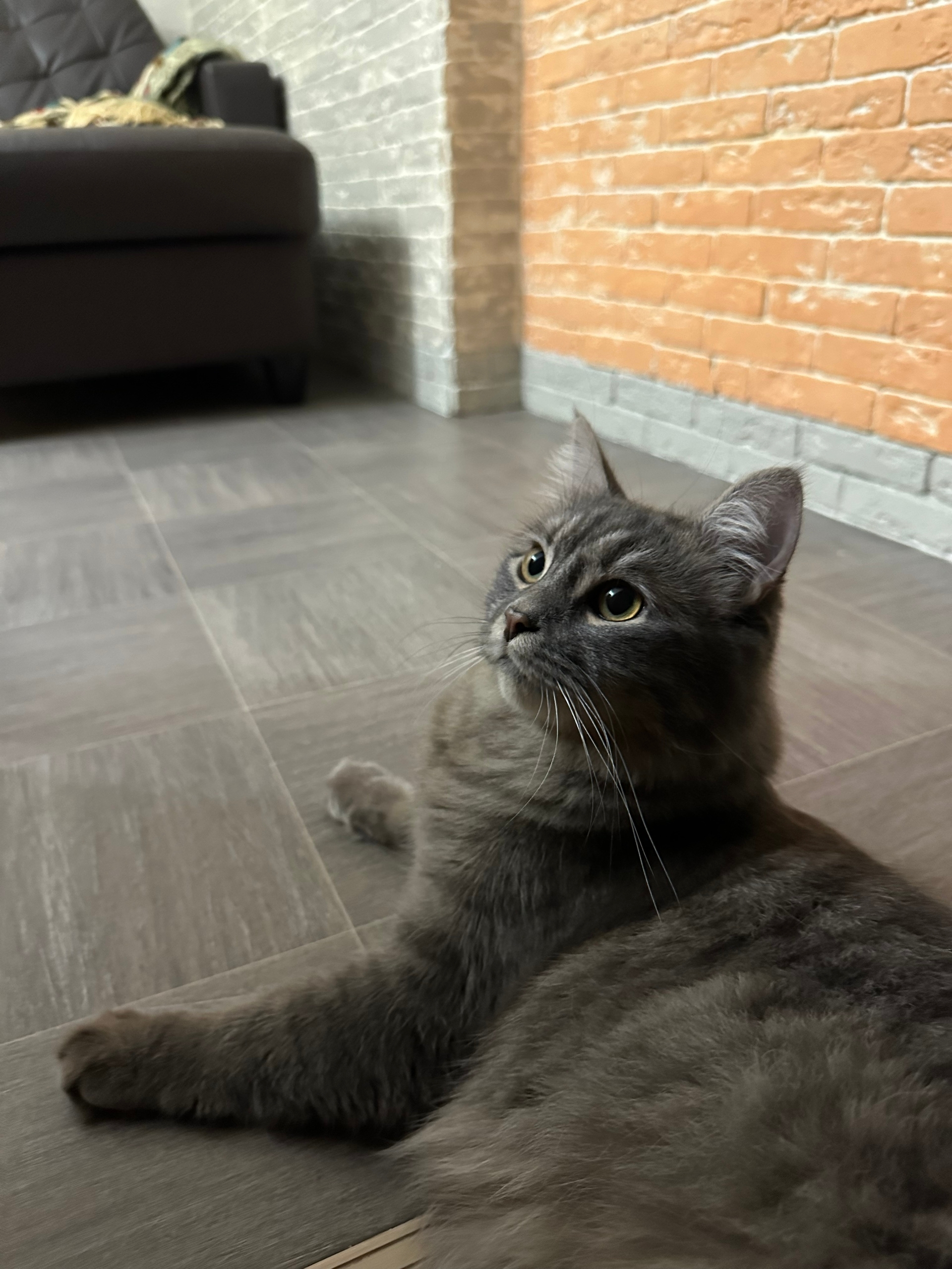Серый, очень пушистый, упитанный, глаза зеленые, на мордочке, характерная для многих котов «М». Последний раз дома видели 27.11. Мог выйти из окна или в подъезд и на улицу 🥺