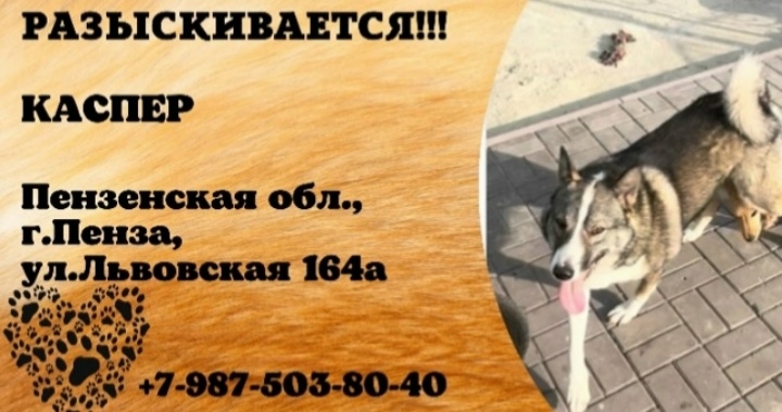 Пропал пёс кличка Каспер.добрый контактный не укусит.Порода Лайка.пропао вечером 2 января .Сбежал с адреса,г.Пенза ул.Львовская 164а.Контакт для связи 89875038040-Наталья.Пожалуйста максимальный репост 🙏