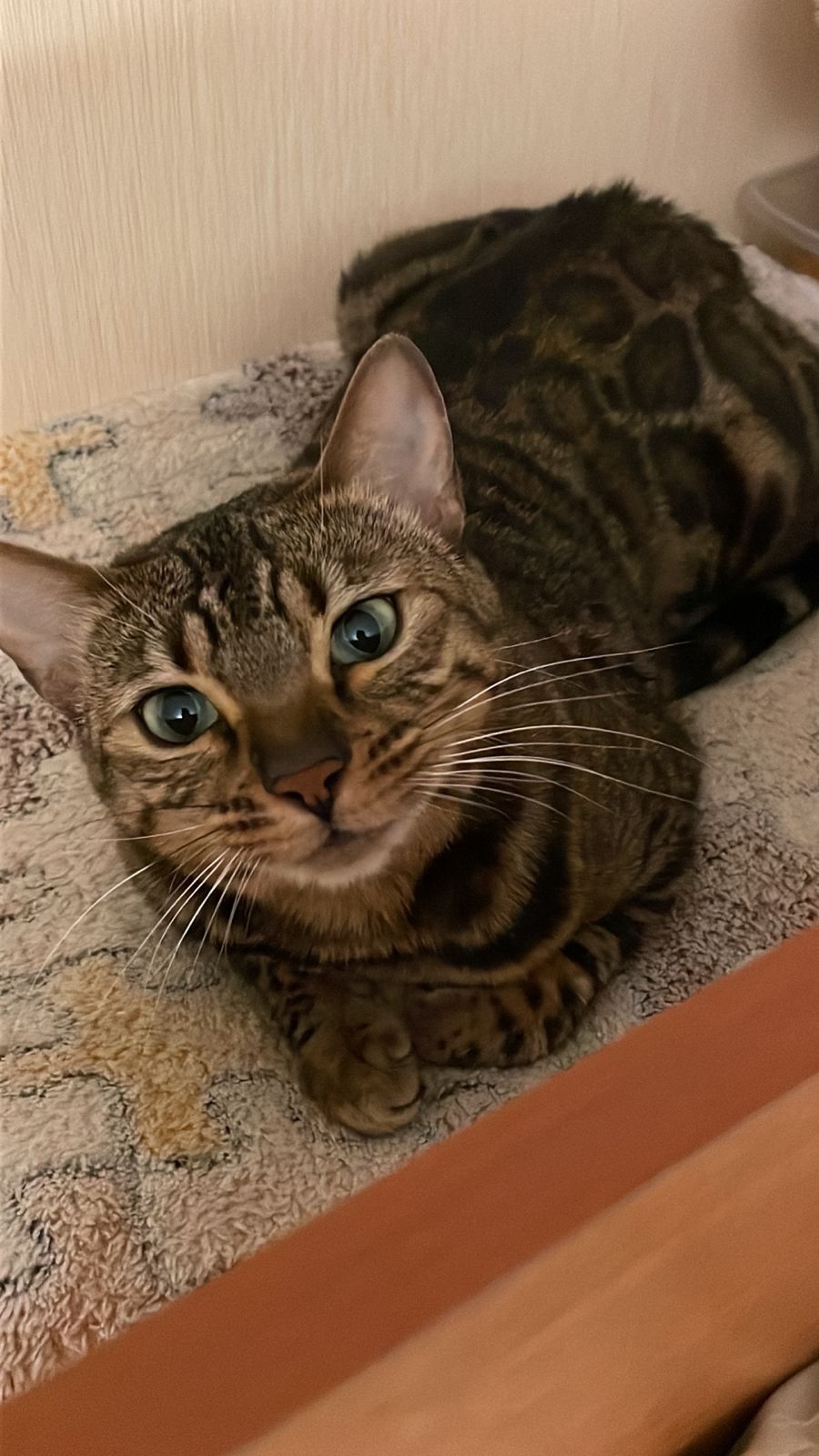 Кличка Феня, Фенечка, окрас леопардовый бенгальская, ласковая, но боится улицы. На улице ниразу не была.