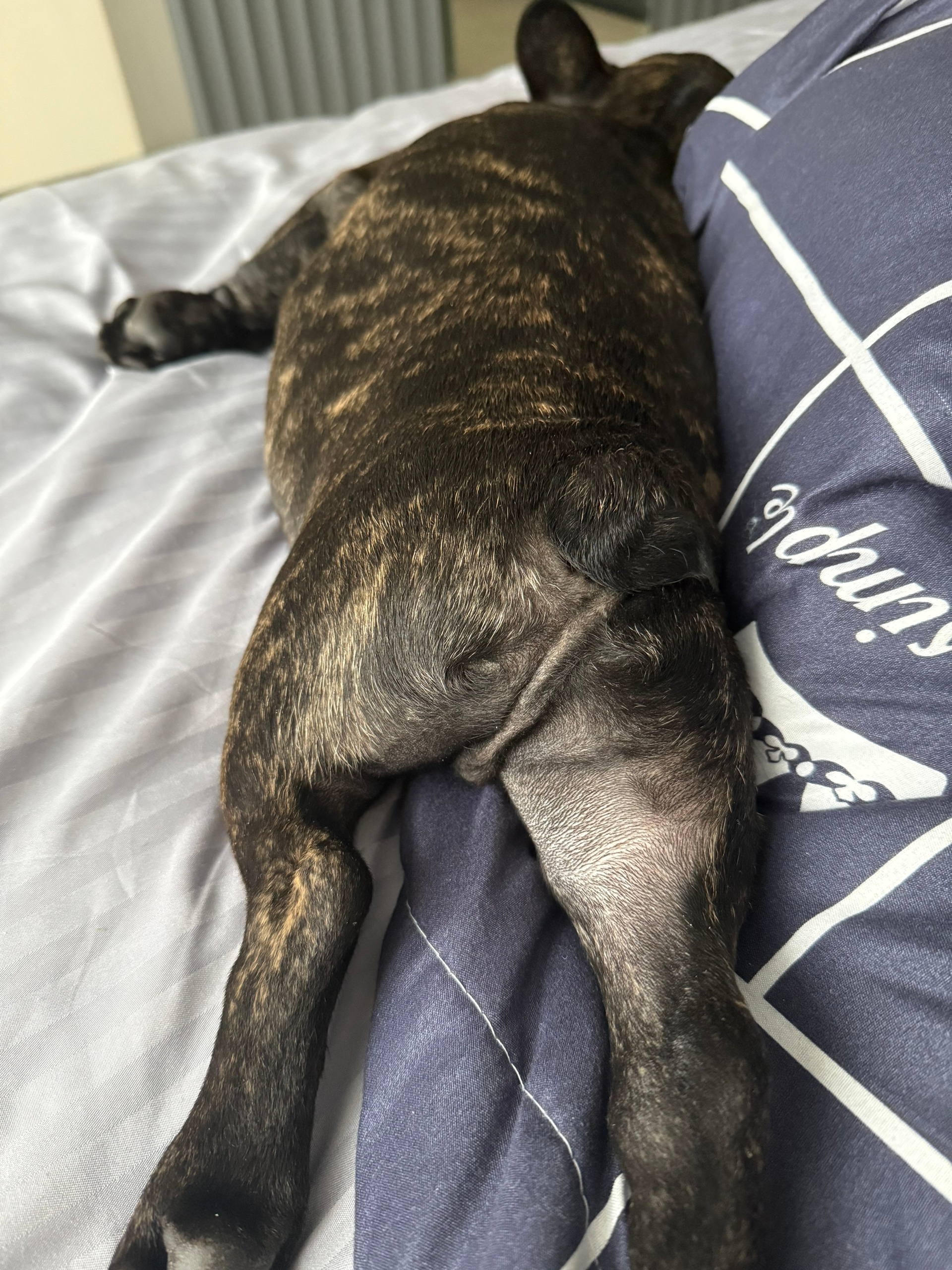Пропала собачка цвет тигровый черный Французский бульдог кличка Скрип правая лапка болит поджимает.По халатности взрослый ушел с открытой двери квартиры по адресу микрорайон Александровский д.18 в районе 16:30 видели в подъезде на первом этаже.Просьба нашедших вернуть за вознаграждение