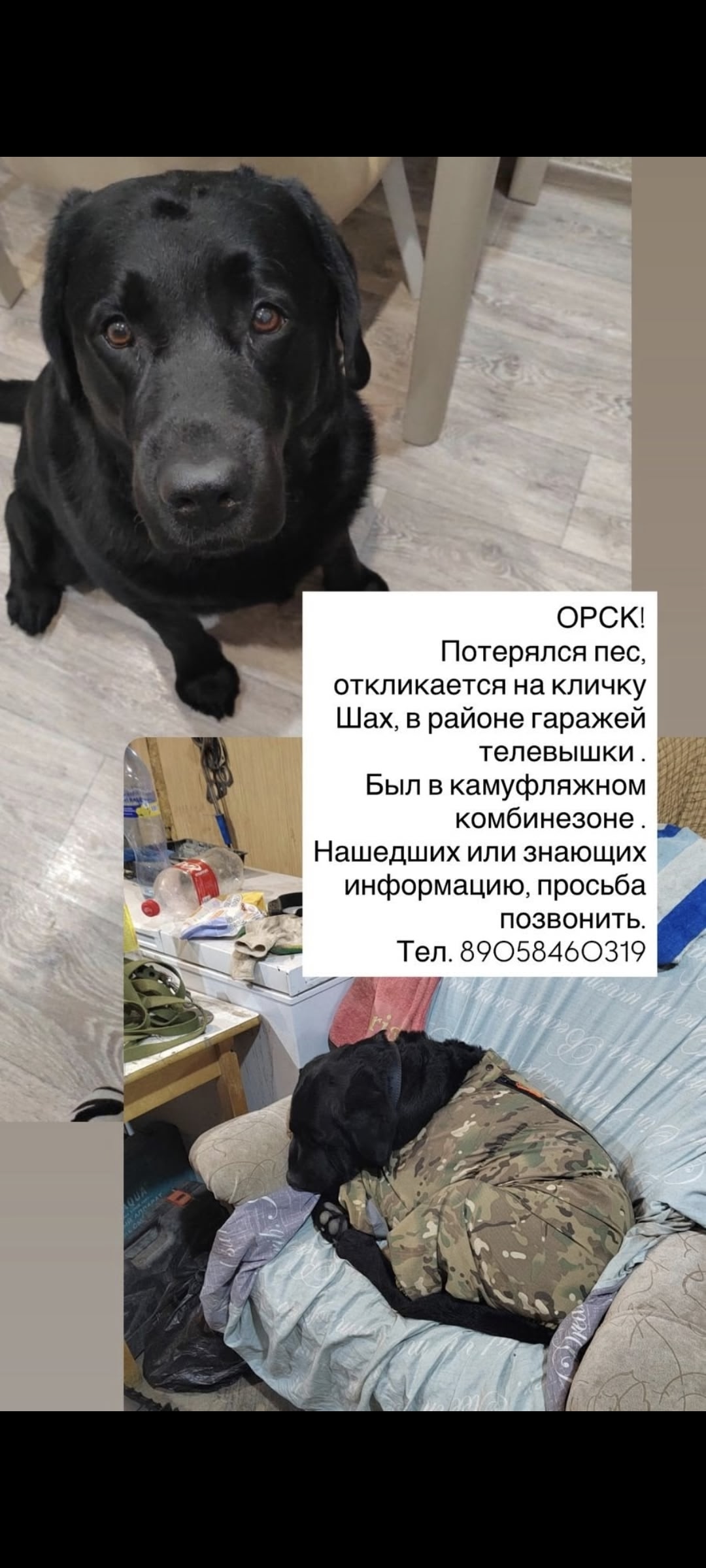 Пропала собака, черный лабрадор, мальчик. Пропал в г. Орске, в районе гаражей на телевышке 29.09.2025 около 16:00