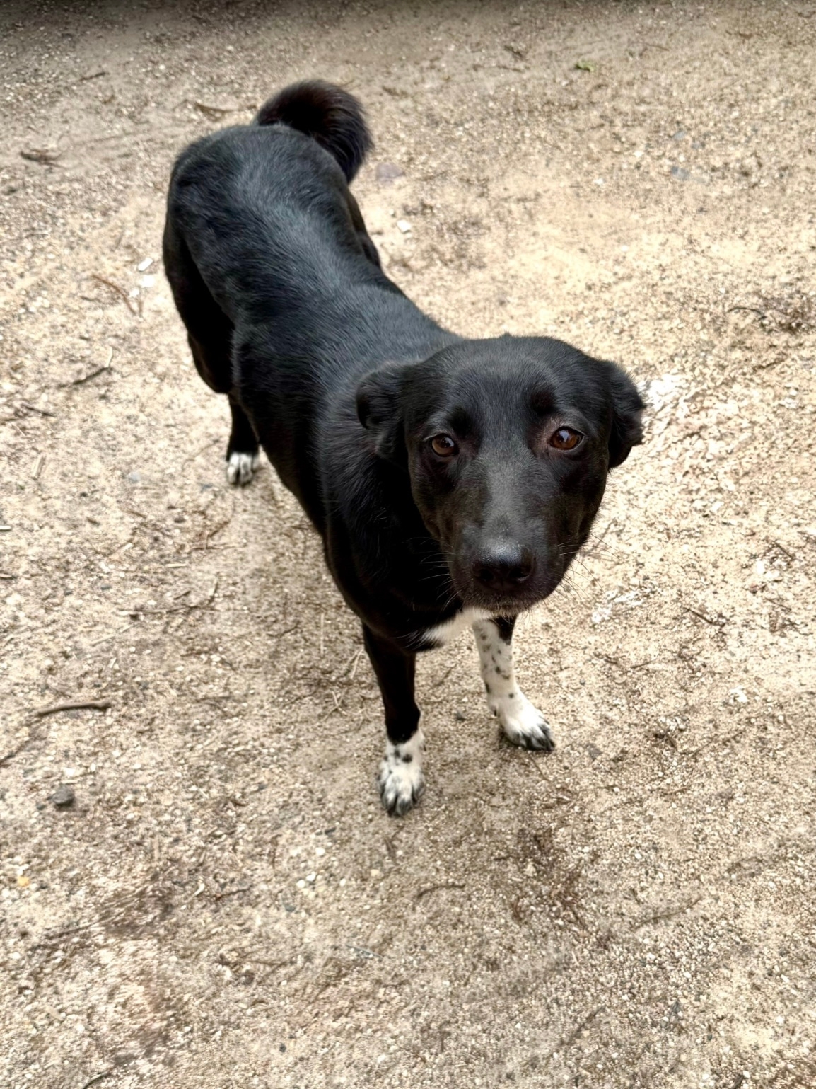 ПРОПАЛА СОБАКА. Чёрная, с белыми «носочками» на лапках, в..