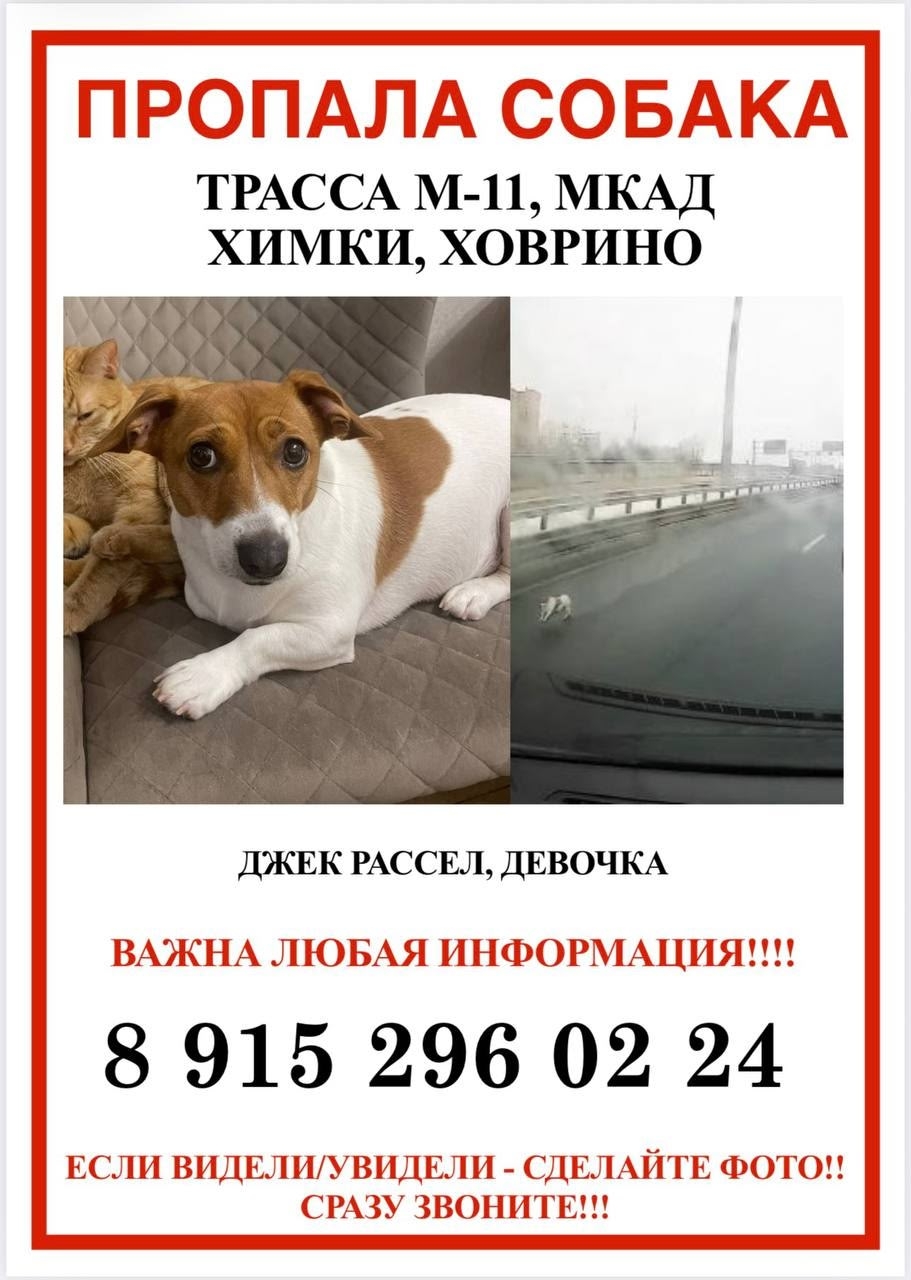 Пропала собака джек рассел 28.02.26‼️ Последний раз видели на М11 на..