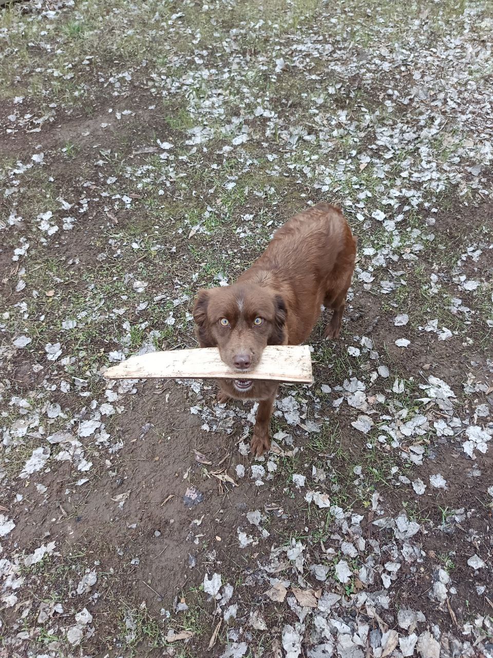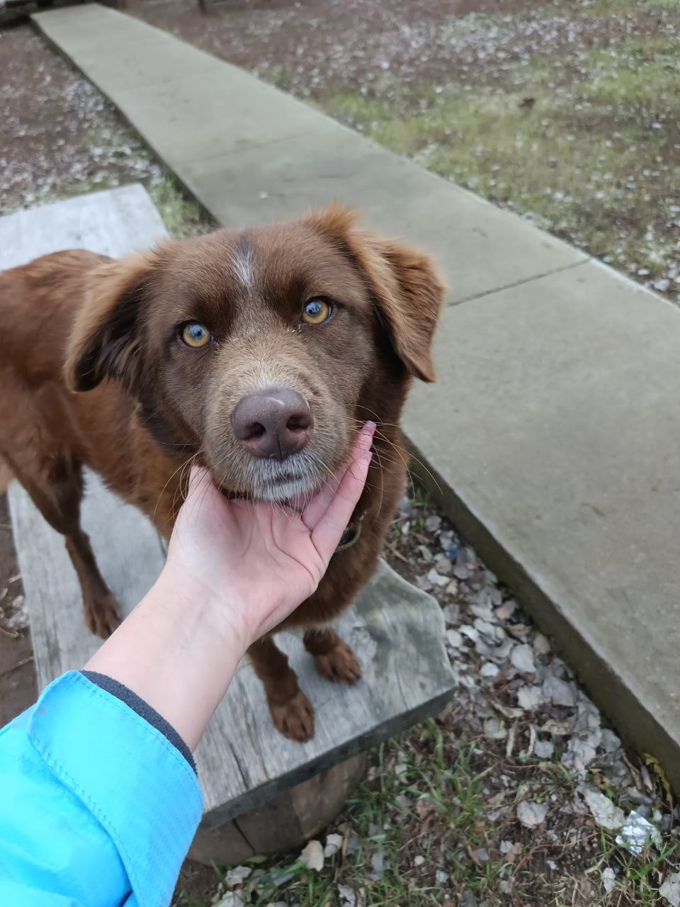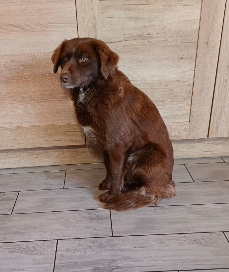 При базе отдыха живёт и пристраивается в добрые руки хорошая добрая собака ярко рыжего окраса. Ей около 1,5 лет или меньше.
