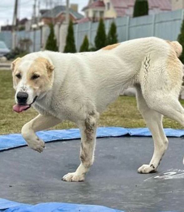В районе Досуговского шоссе сбежала девочка алабай по кличке Санта. Окрас белый с рыжими пятнами. Потерялась вчера около 19:00.