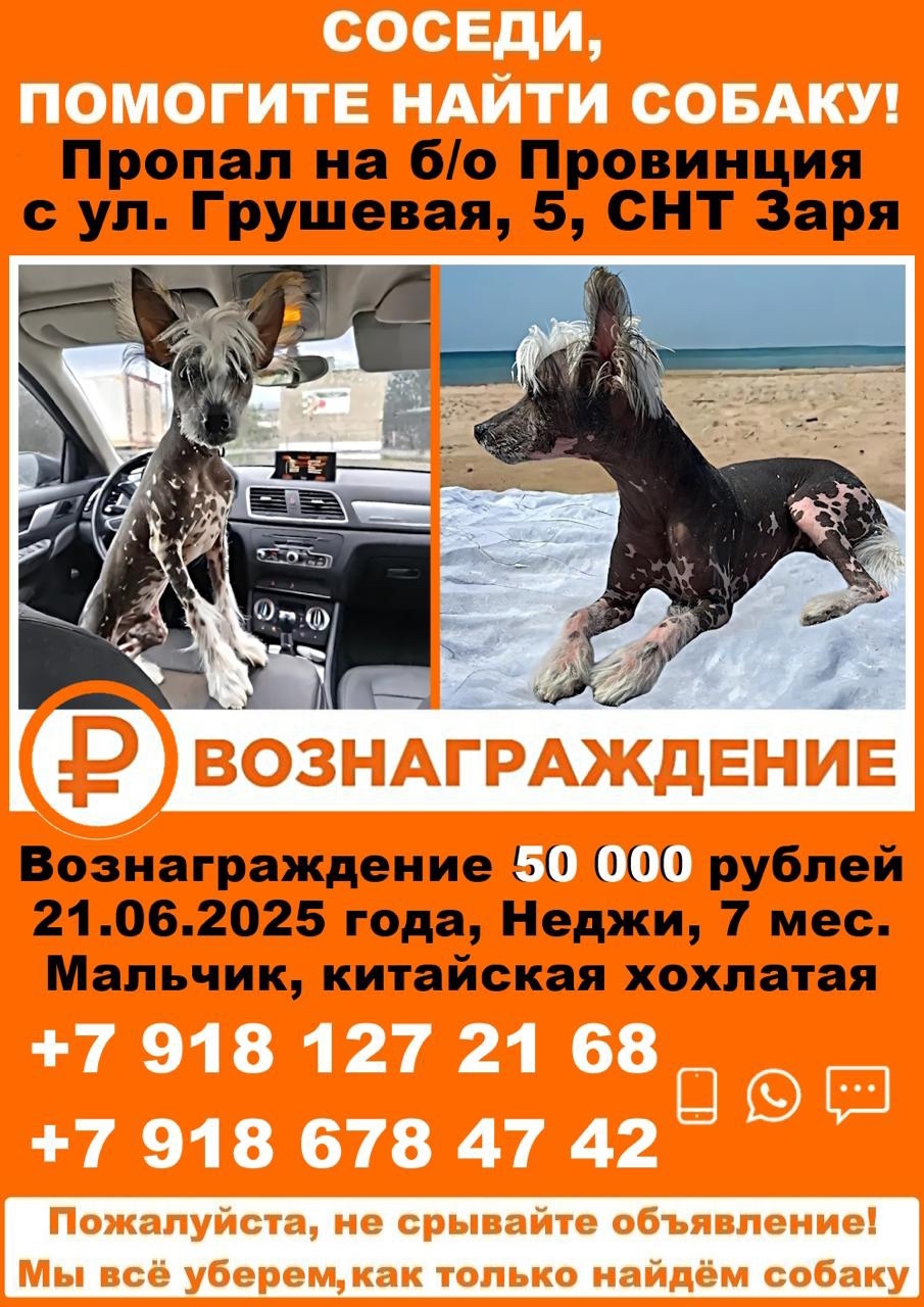 – Если такая собака появилась у ваших соседей или увидите её на выгуле, скажите им, что её ищут, попросите позвонить нам и обязательно позвоните сами, если собака наша вознаграждение и анонимность гарантируем.