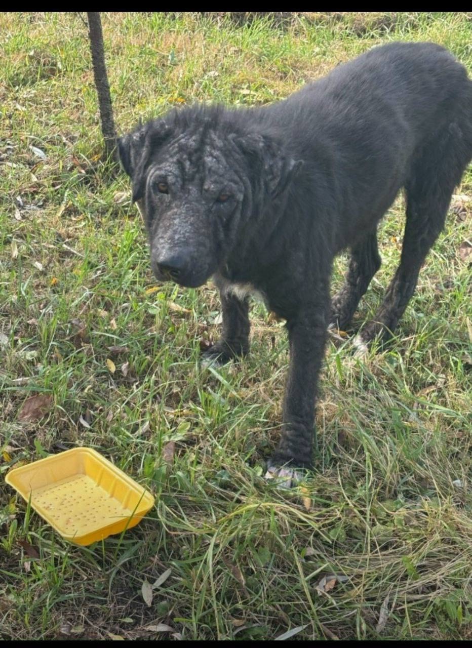 Прибилась собака Раменский рн с Кривцы. Бегает по селу где то с месяц. Метис ? шарпей.