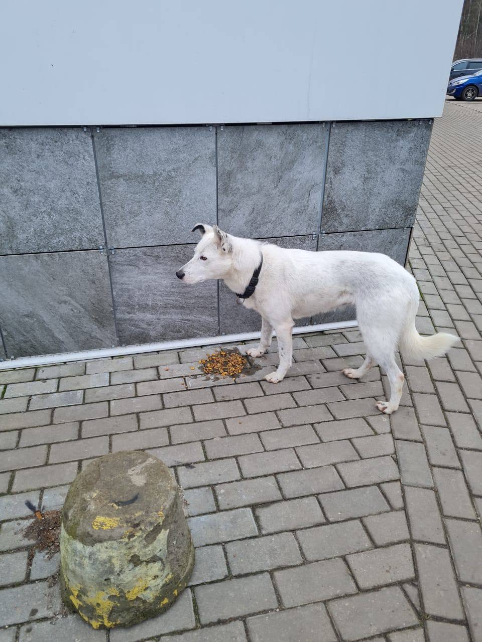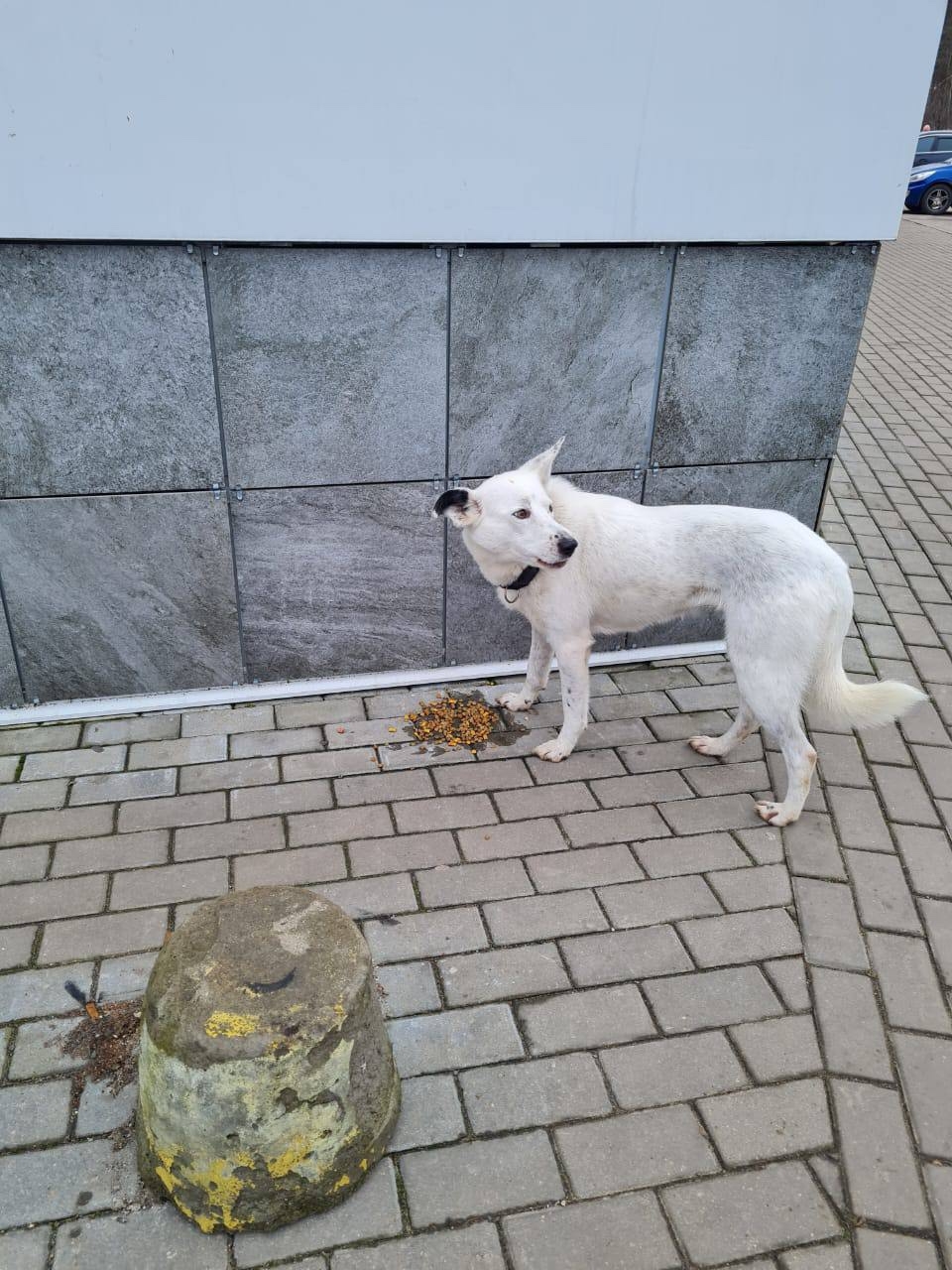 Бегает около магазина «Да» с ошейником. Девочка. Может у кого убежала.