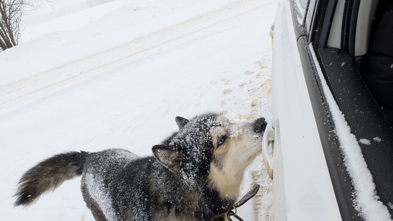 Рядом с ледово, на обочине сидит собака (видели утром и сейчас она..