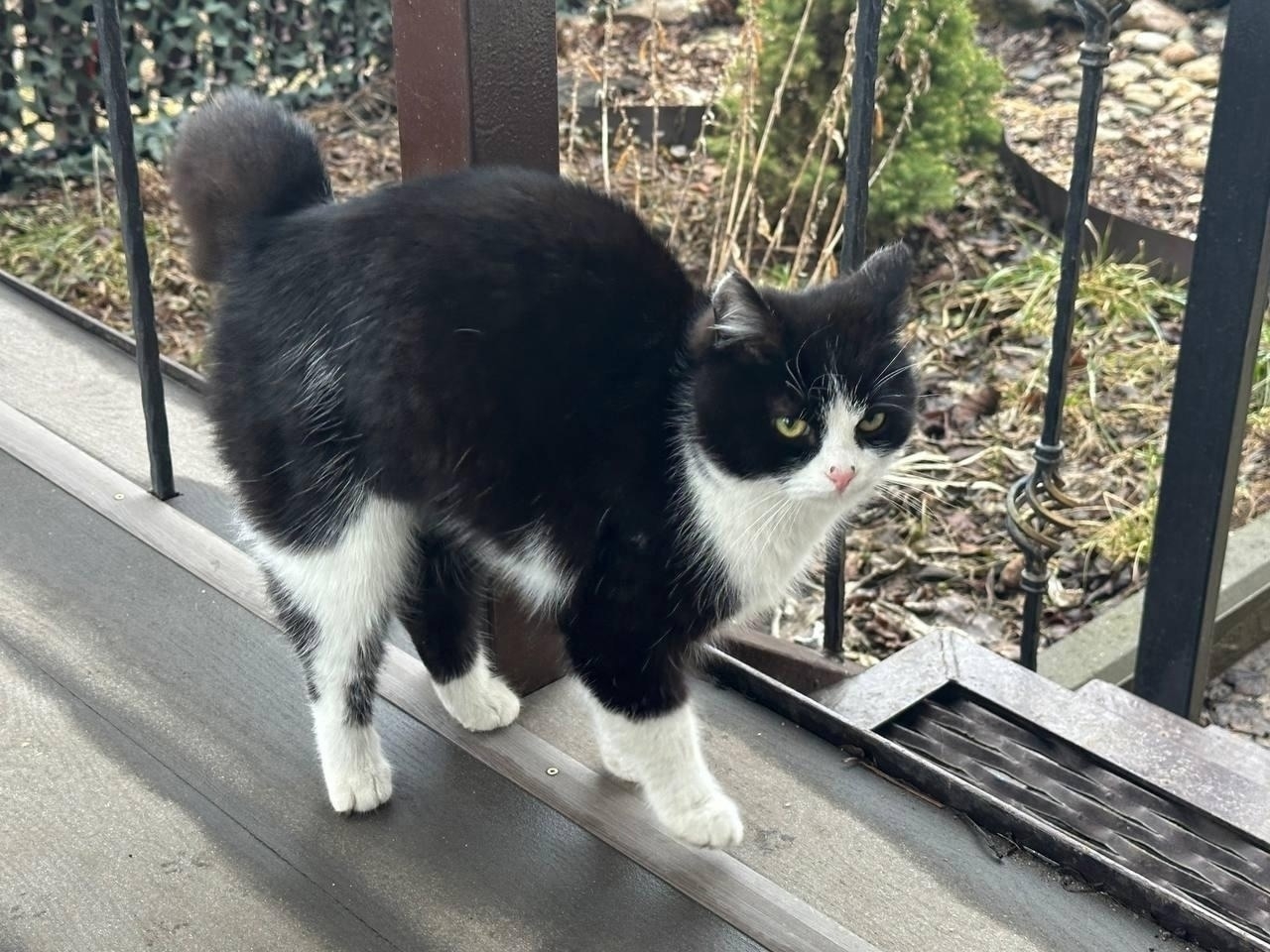Эта кошечка — воплощение элегантности и ласки. Она обожает, когда её гладят, мурлычет, как маленький моторчик, и с интересом следит за всем происходящим. Белый шарфик на шее ей очень к лицу!