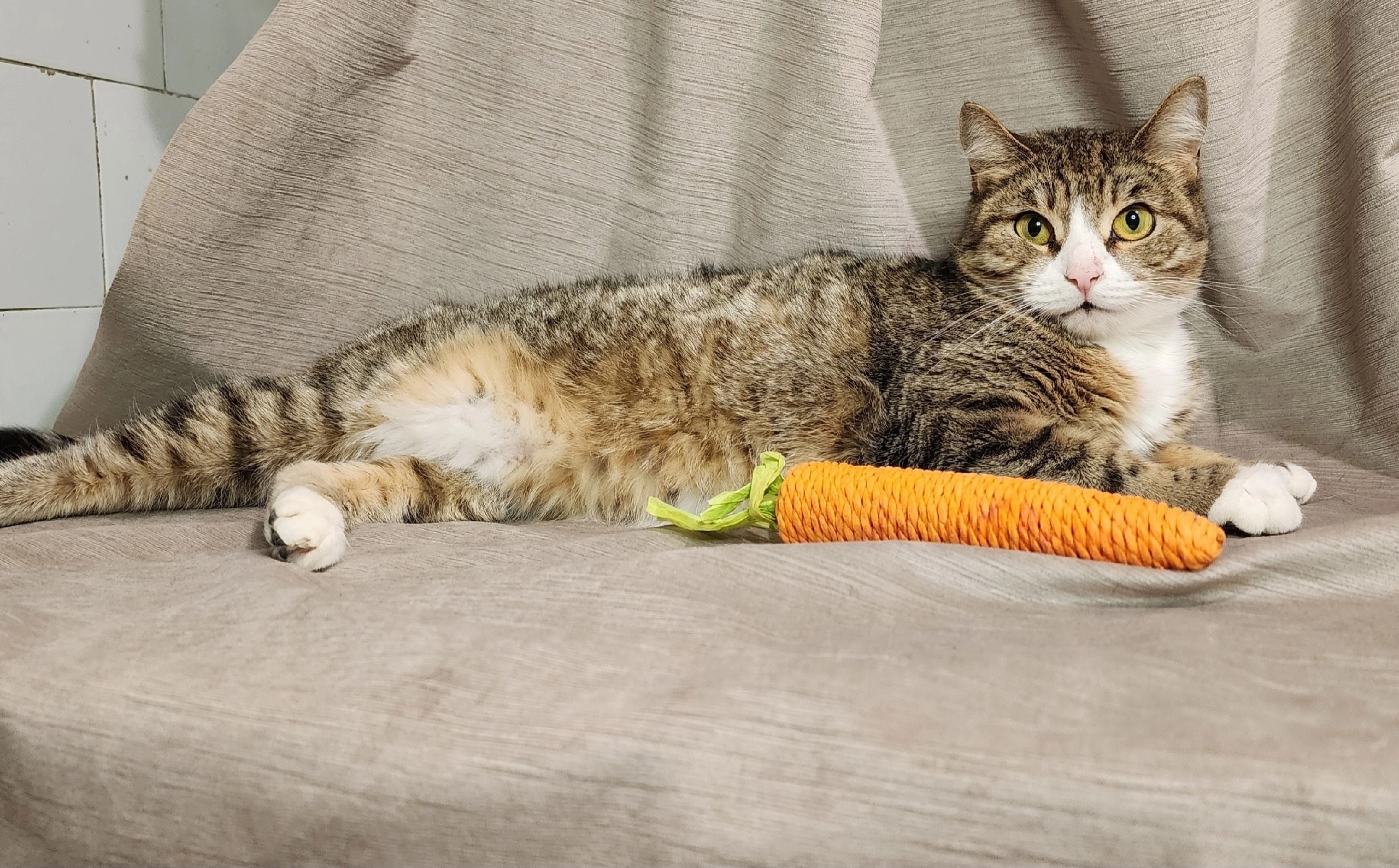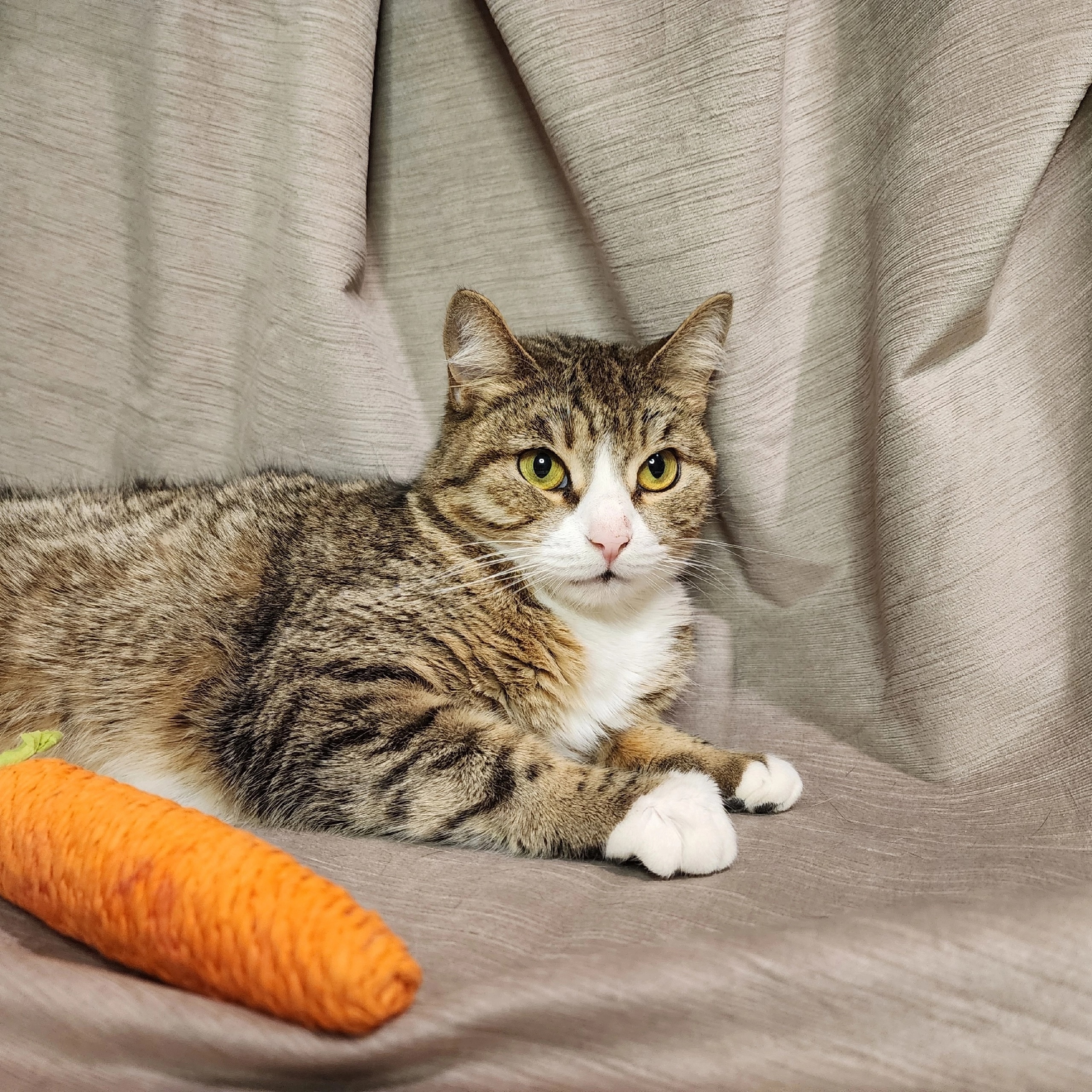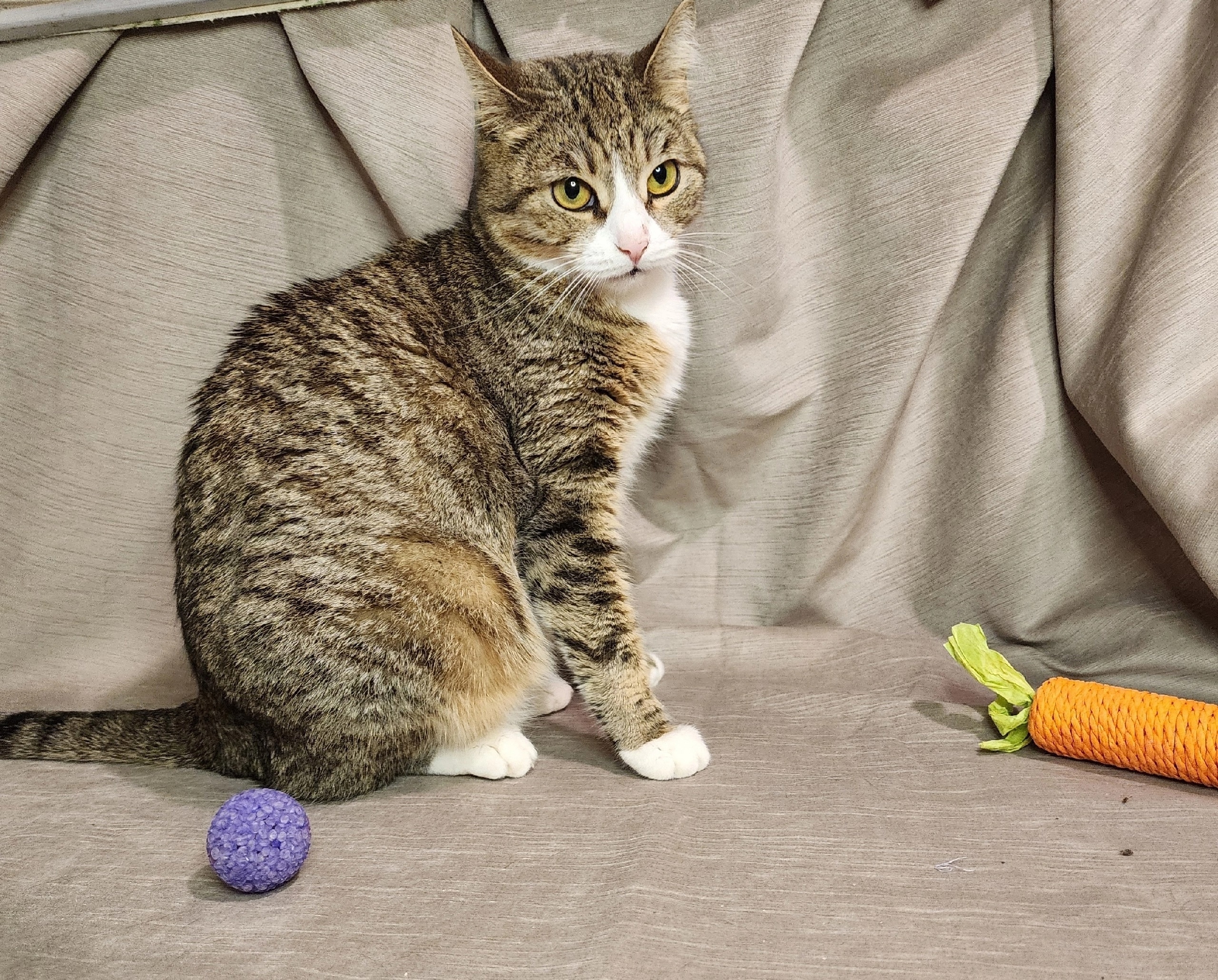 Мэй — это настоящее сокровище с мягкой шерсткой и изумрудными глазами, наполненными любопытством и добротой. Она просто обожает проводить уютные вечера в компании человека, мурлычет в такт его мыслям и всегда готова прийти на помощь, наполняя дом своим тихим присутствием.