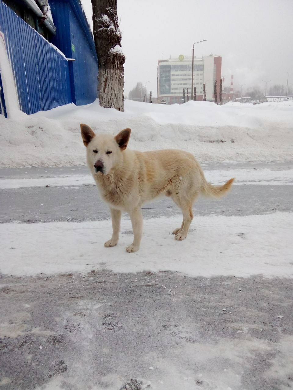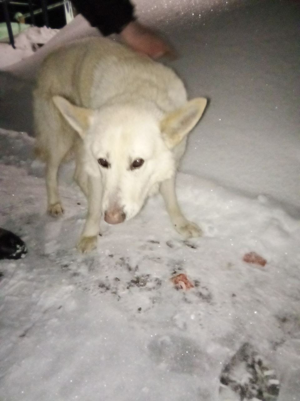 Мальчик, ухоженный, без аммуниции, окрас белый/палевый, недоверчивый, по типу похож на БШО