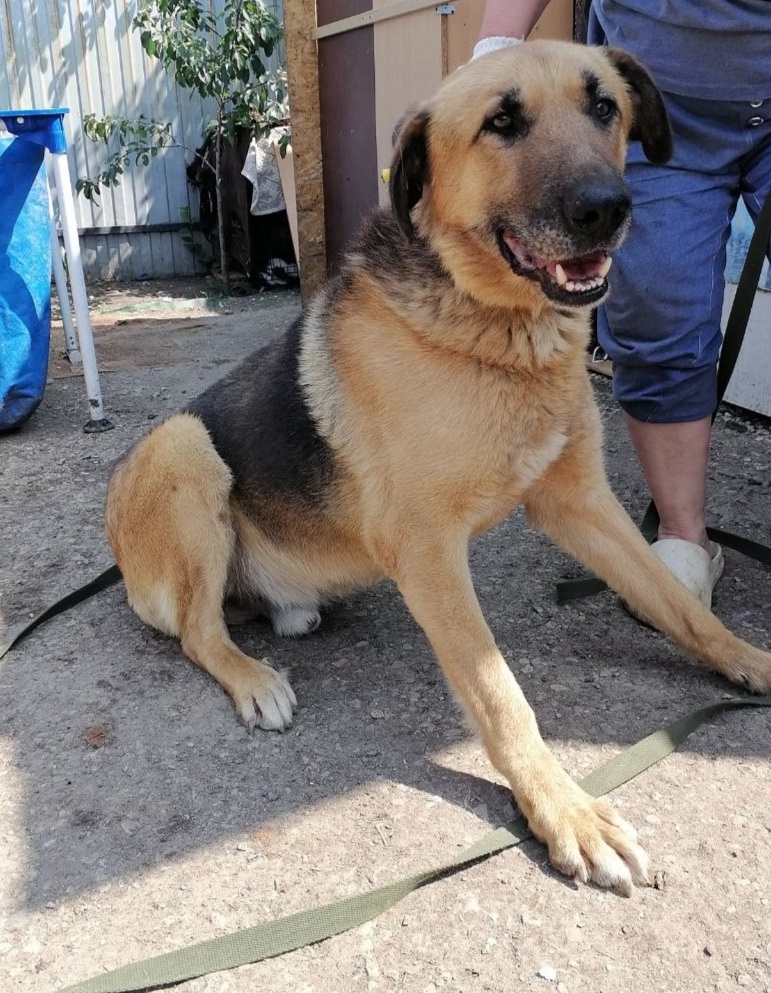 Хороший пес, молодой, ветврач сказал ему примерно 5 лет. На поводке ходит, можно на цепь, за вольер будет благодарен.) Отдается срочно, так очень быстро привыкает к людям .