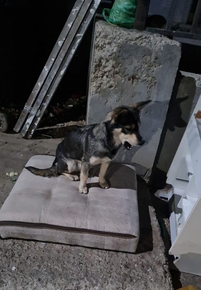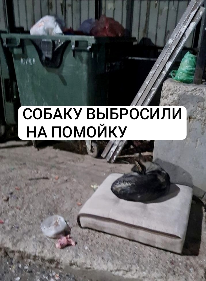 Незадолго до нового года к мусорным контейнерам из машины выбросили небольшую собачку-мальчика. А чтоб не сразу замёрз, “заботливо” положили подушку от старого дивана.