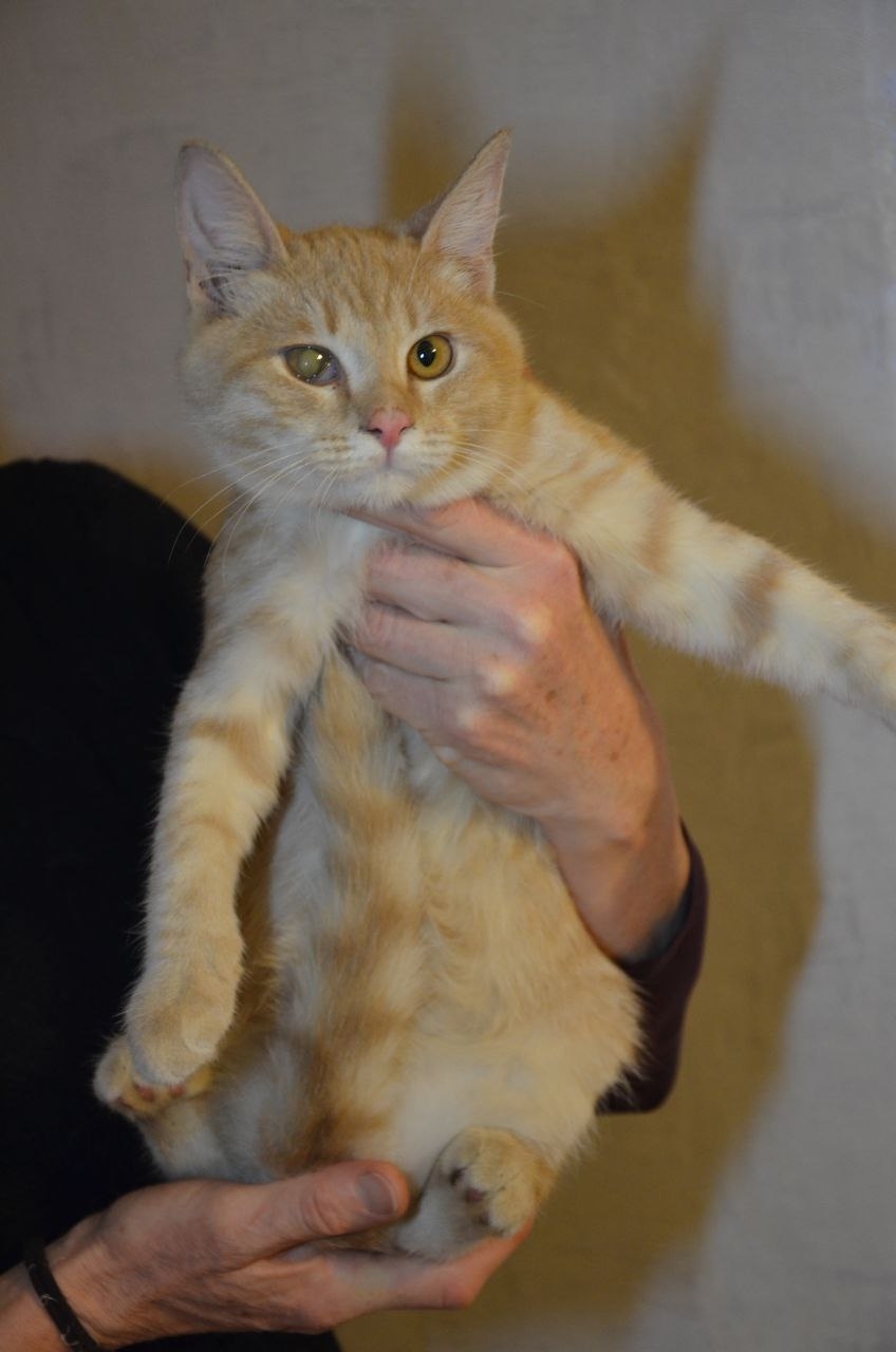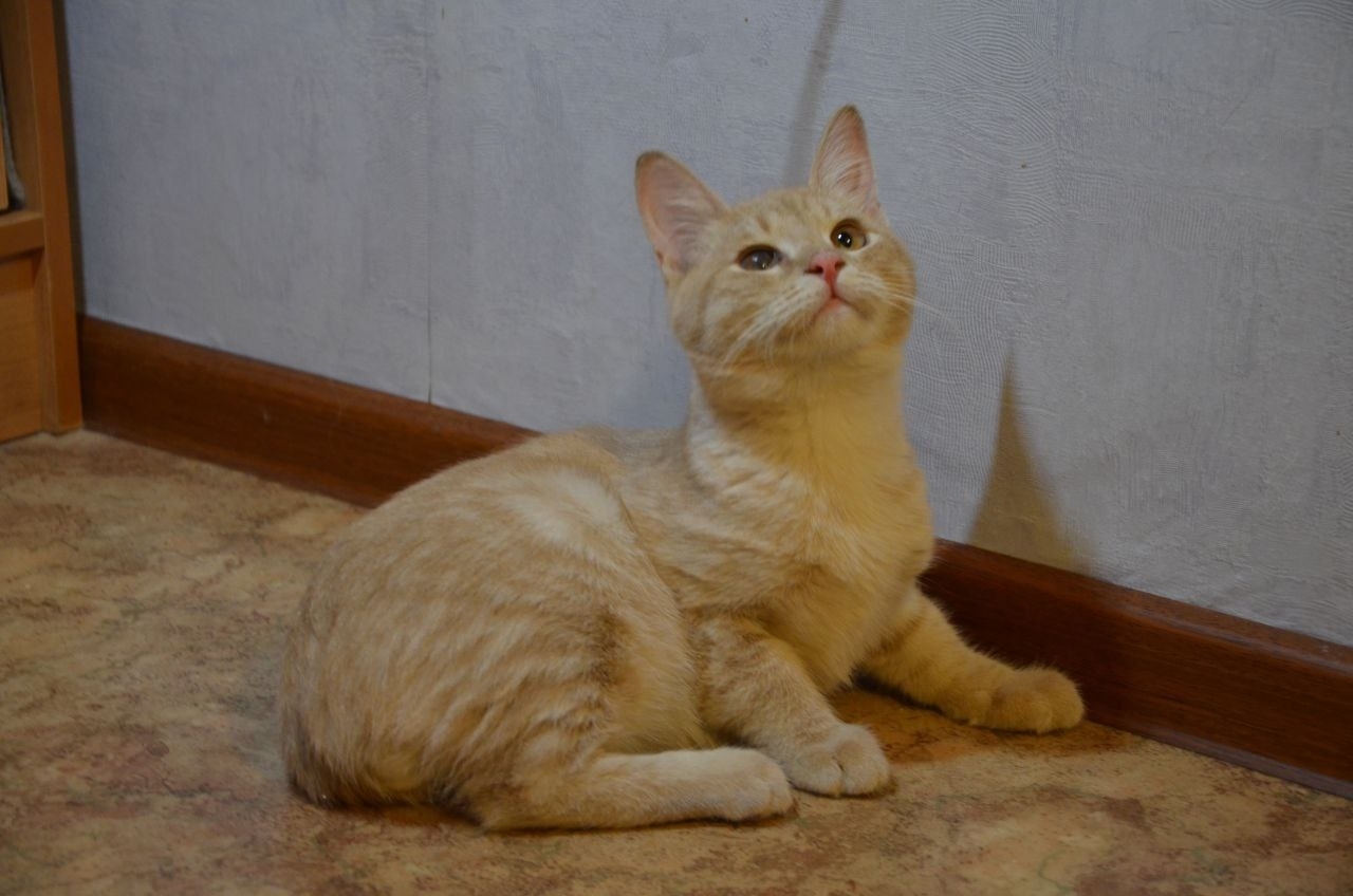Чон родился в начале июля 2025 г. Его мама была обычной бездомной дворовой кошкой, которая жила у цветочного магазина. Там добрые люди ее и подкармливали. Мама и папа были рыжие – рыжие! А Чон вот такой “кофе с молоком”. Жизнь уличной кошки полна опасностей. Мама его сильно заболела, спасти ее не удалось. А Чон с братьями и сестрами остались одни у магазина. Их было трое. Я успела забрать одного. Его никто не хотел брать. У него был полный “джентльменский набор”: калицивирус (язва на языке была такой большой, что до сих пор остался след – ямка в языке), ринотрахеит, лишай, подкожный клещ (сейчас все эти беды уже позади). И пленка на левом глазе (симблефра). Он видит этим глазом, но размыто. Это не мешает ему устраивать догонялки по квартире. Он просто невозможно шустр. Чон здоров, обработан от всех паразитов. Чону сделали прививку от бешенства и на днях была сделана первая прививка от возможных инфекций. Чон очень славный малыш.