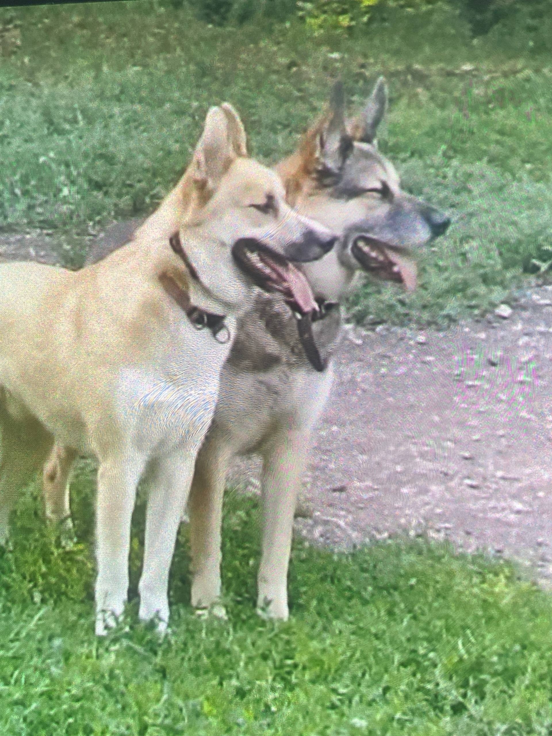 Лаки около 8 лет, ласковый, нежный, спокойный и послушный, само очарование. Фокс около 3 лет, весёлый, активный, озорной, но тоже ласковый и добрый.