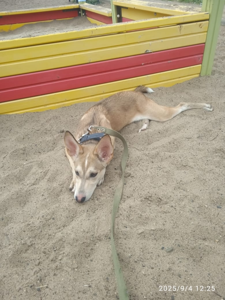 Собака явно потерлась, была найдена районе Кошелев-парка. Приучена к выгулу. Собачка активная игривая, здоровая. Любит общение с людьми, терпима к другим животным .