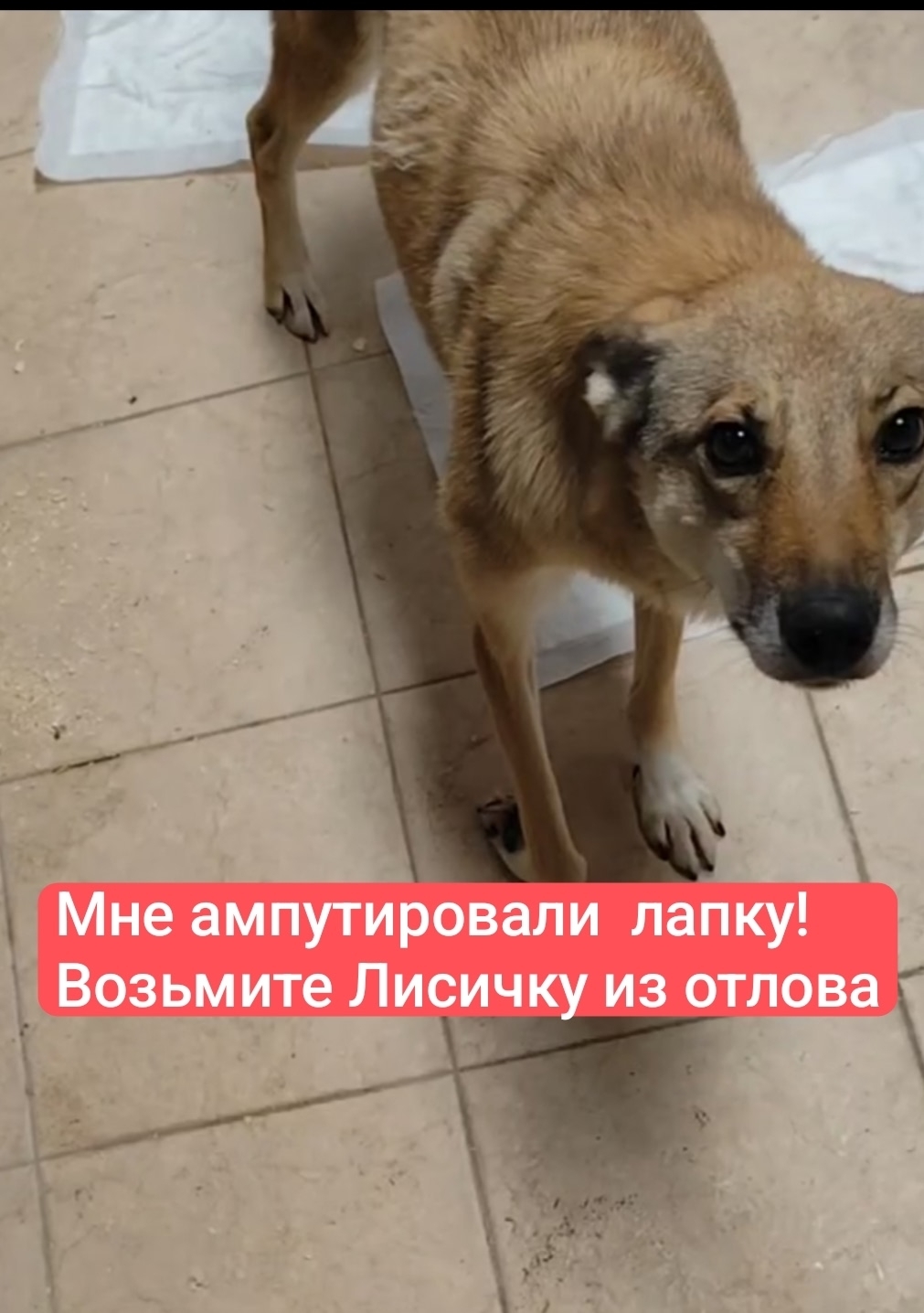 Присмотритесь к этой чудесной собаке, она так ждет человеческого тепла! Возьмите трехлапика! Подарите Лисоньке дом!