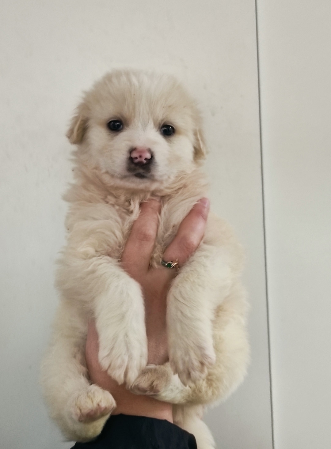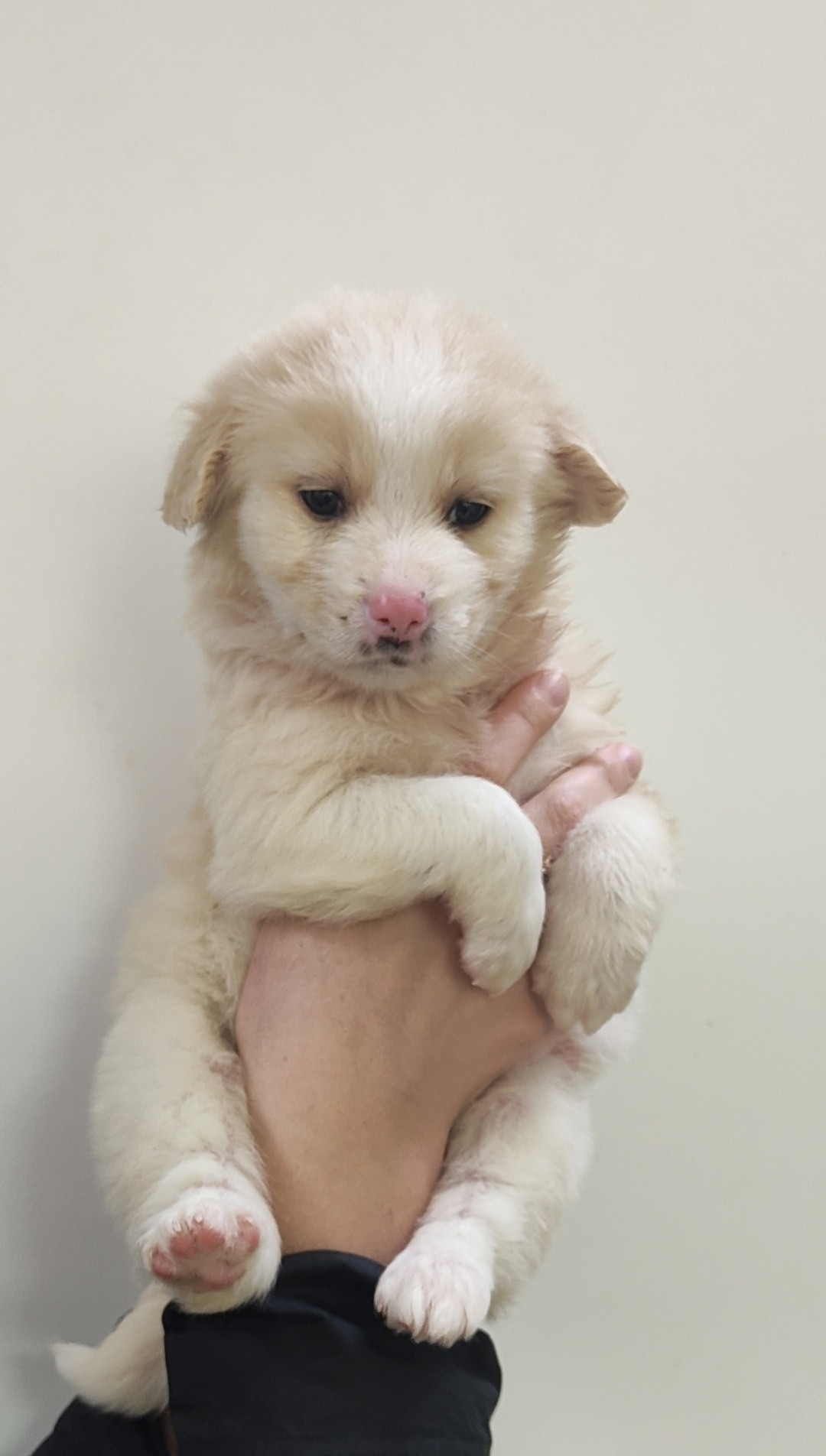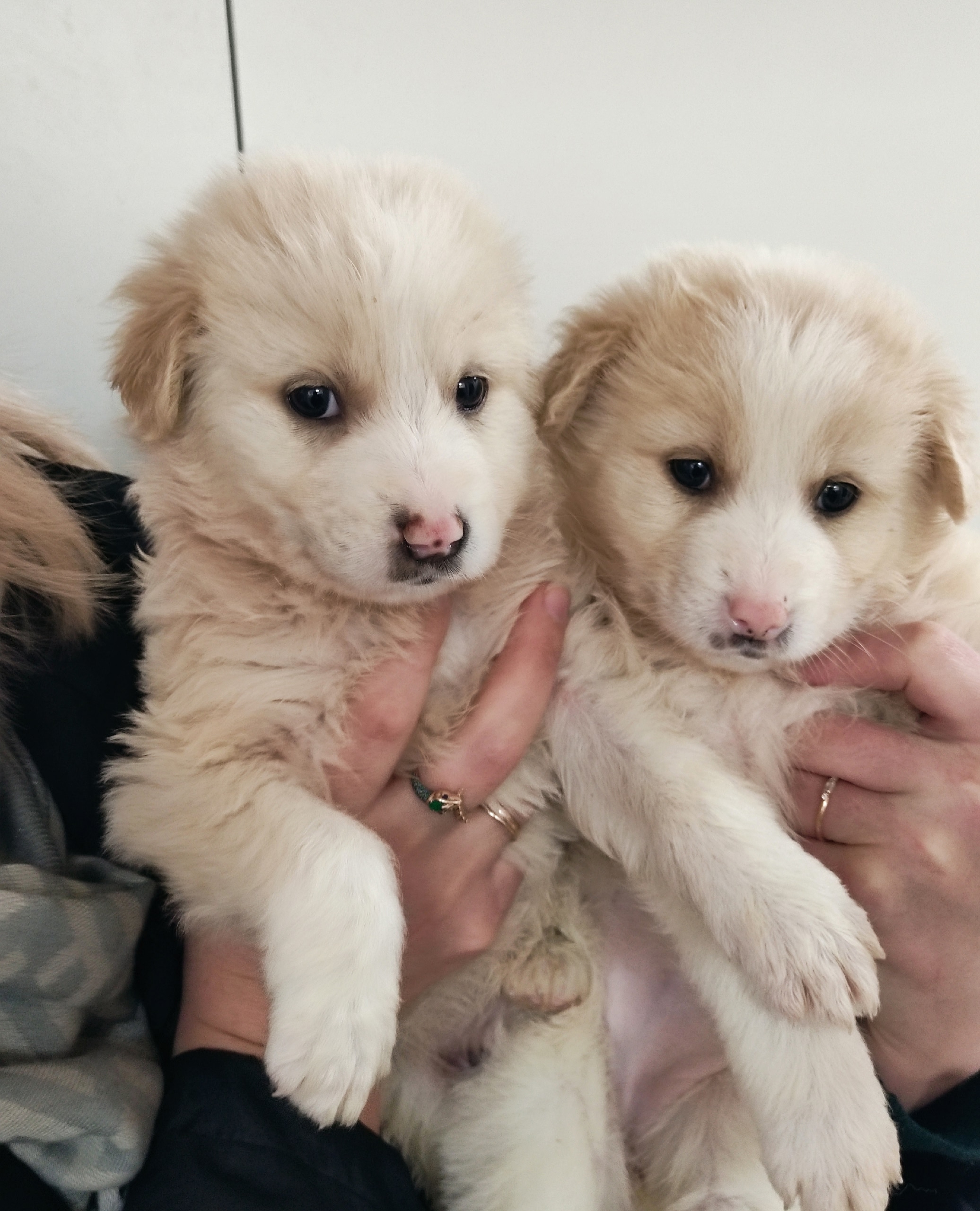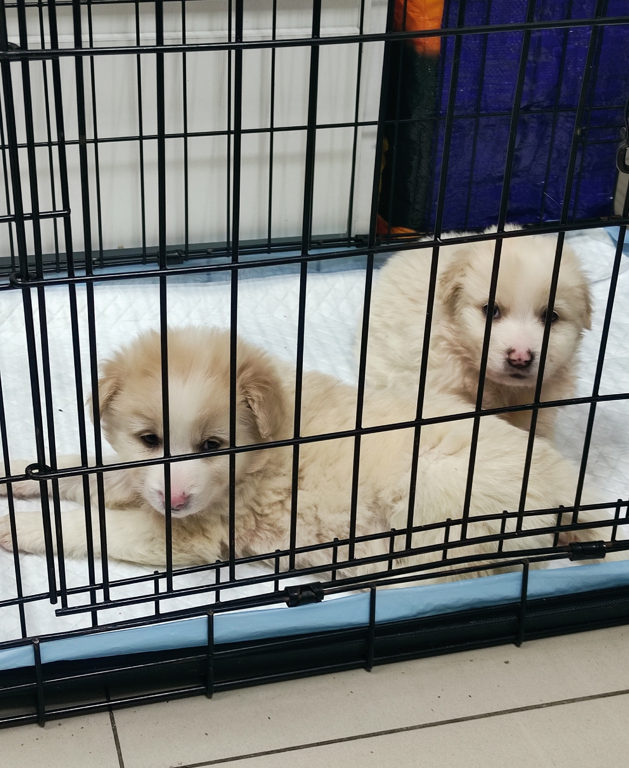 Детей отмыли, оказались “белые медвежата”. Поставлена первая прививка Мультикан 4, обработаны от паразитов. Хорошо кушают сухой корм для щенков.