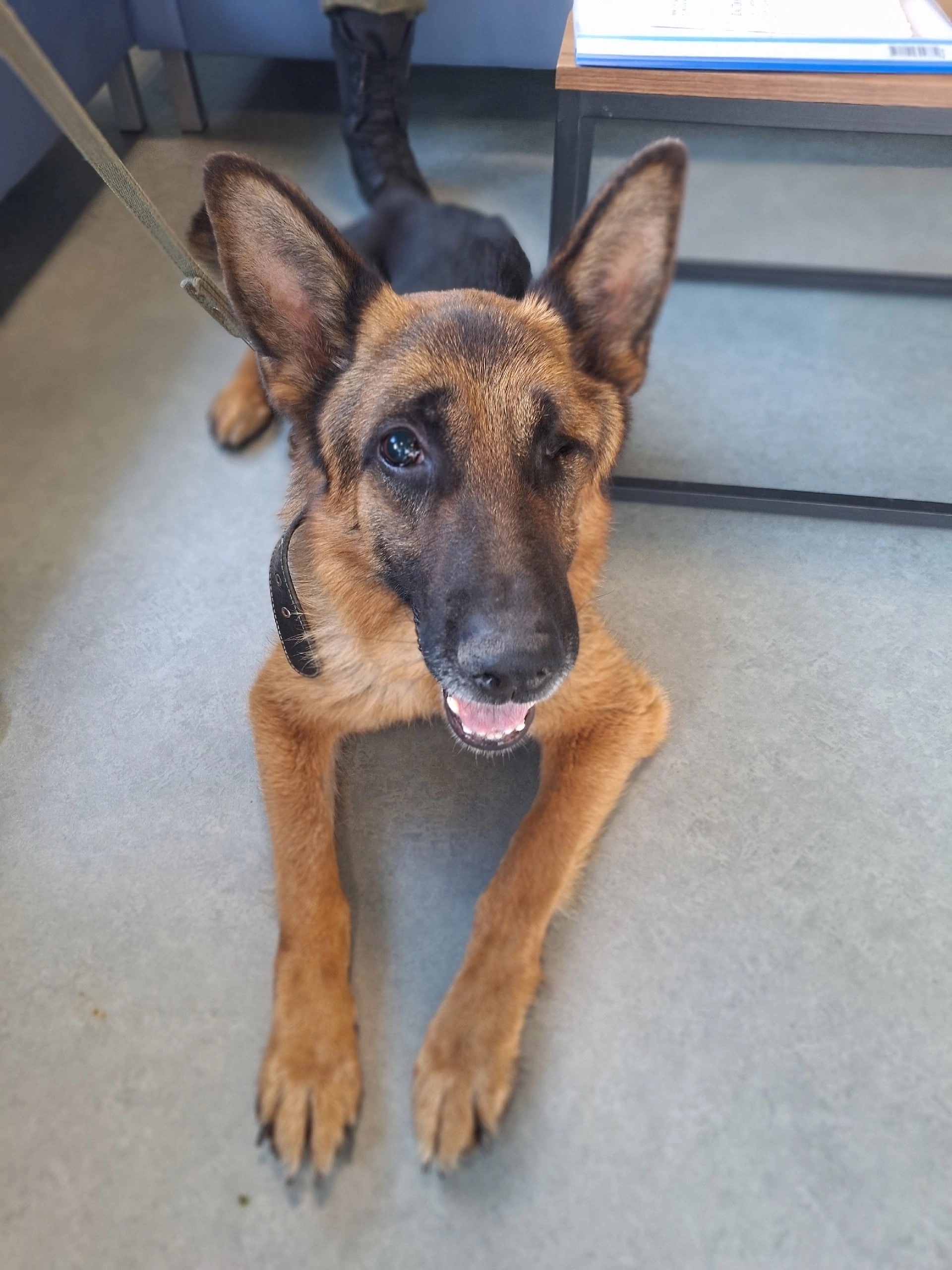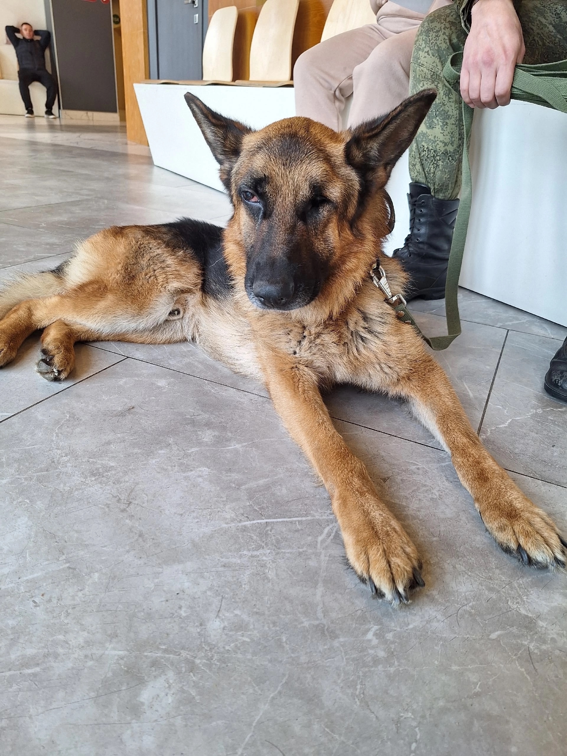 Молодая немецкая овчарка, минно-розыскная собака Чабан, 3 года, 10 месяцев, ослеп в результате перенесенной травмы глаза во время прохождения военной службы!