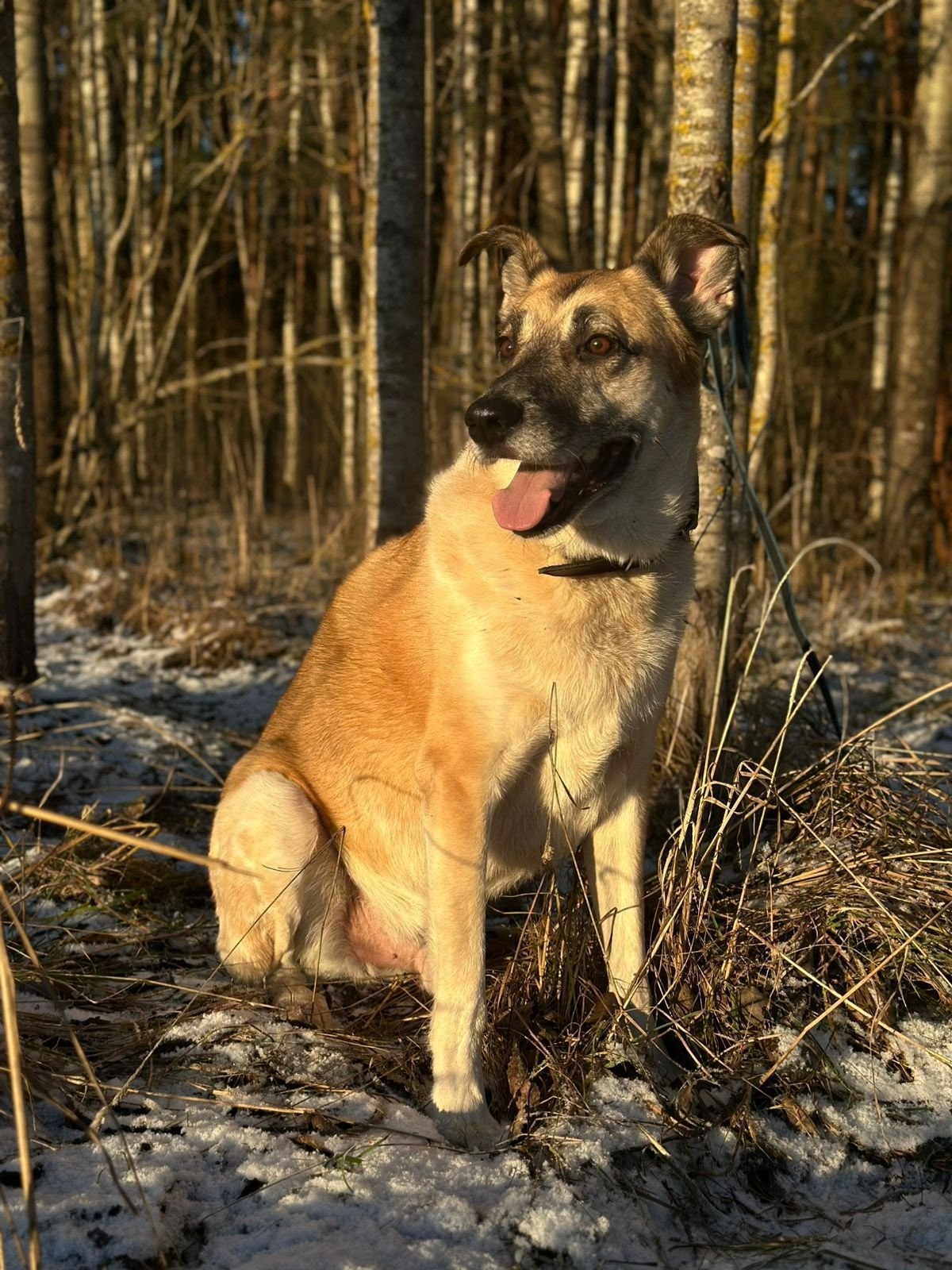 Приучен к прогулкам на поводке