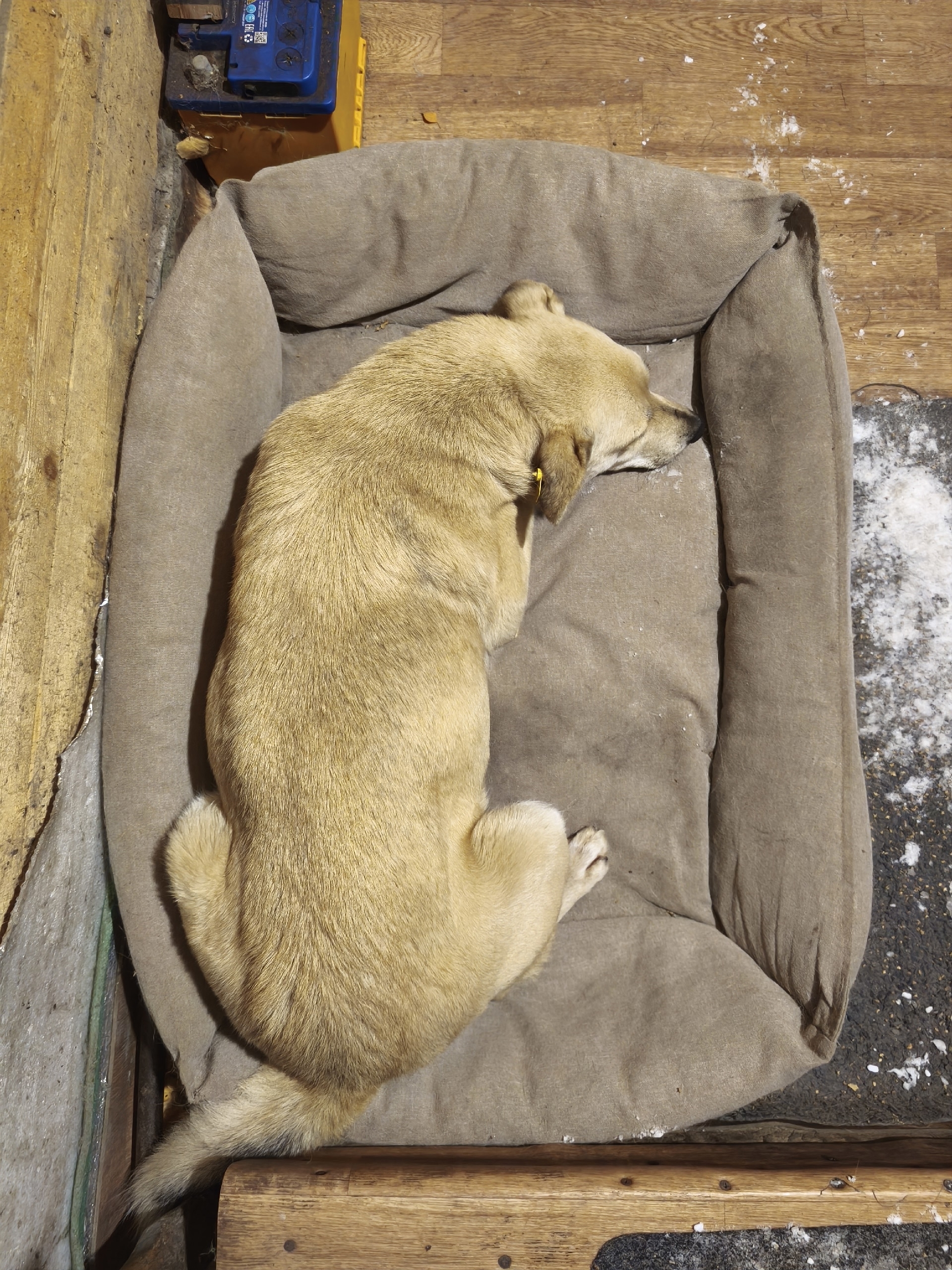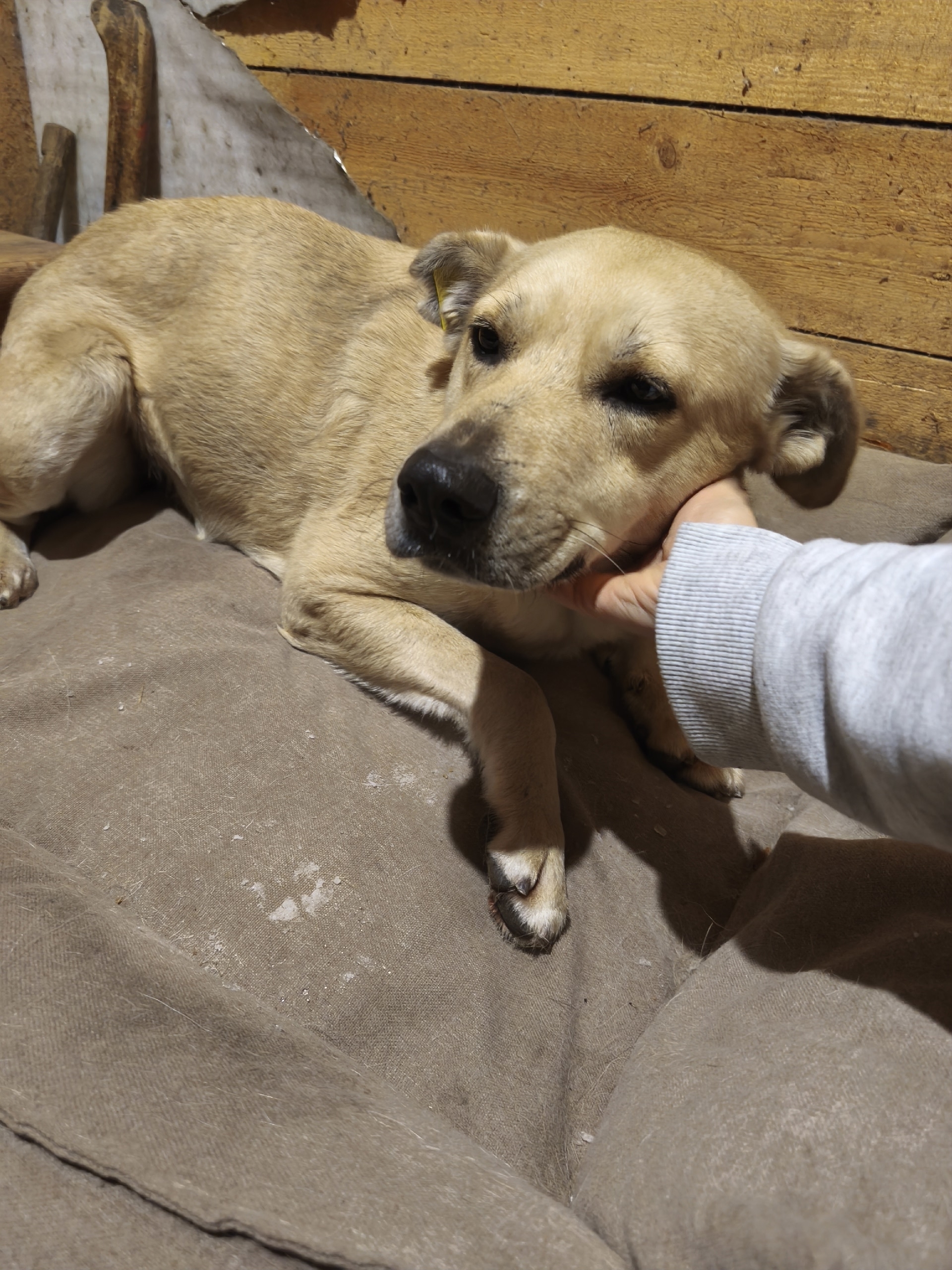 Пришёл пёсик и никуда уходить не собирается. Выглядит очень напуганным и потерянным.