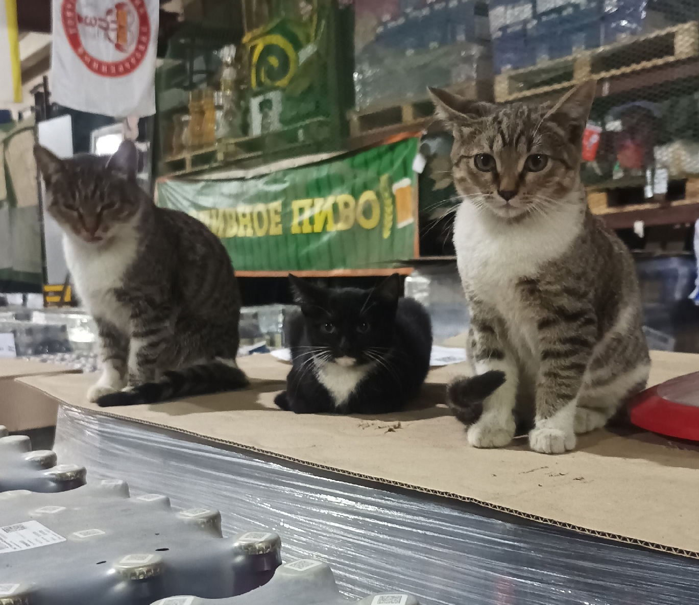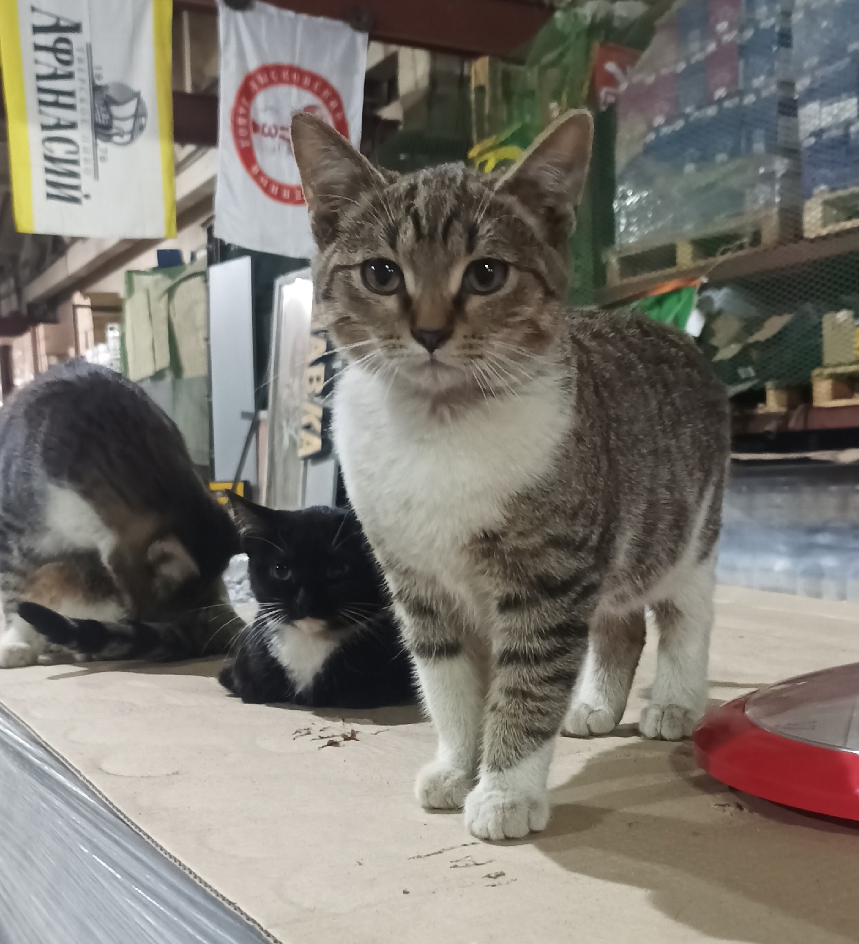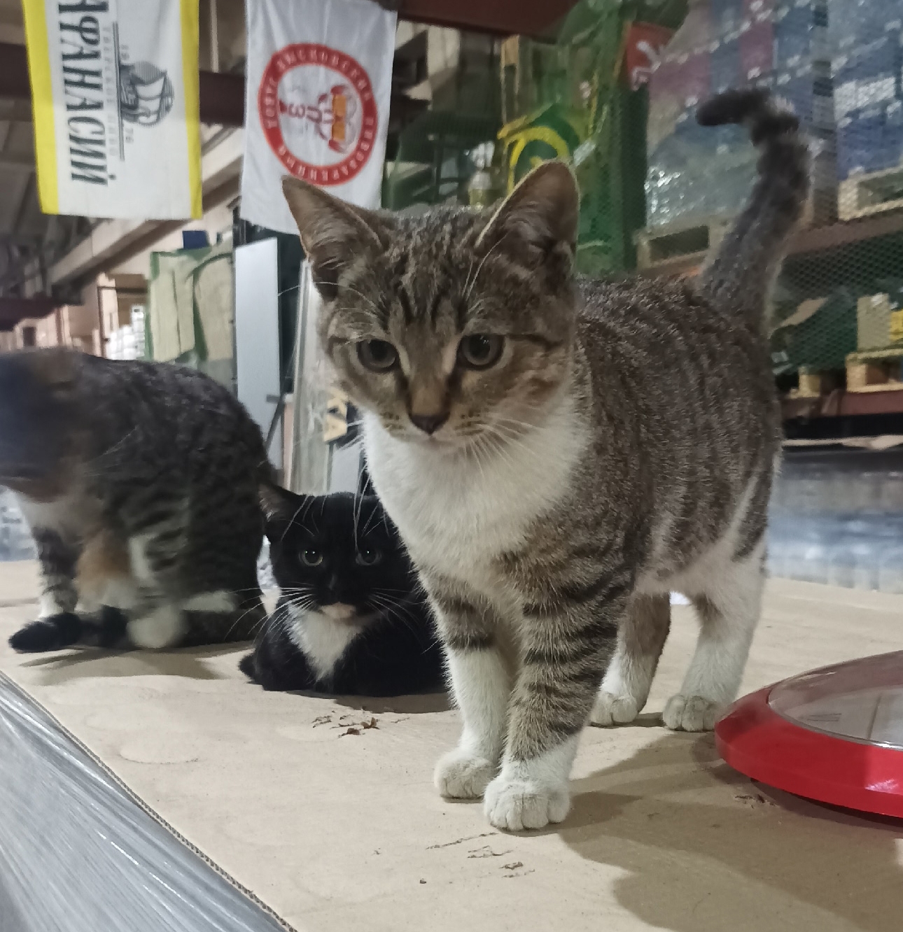 Саратов, Ленинский район, Московское шоссе. Котята уже большие, есть один котик поменьше. Побольше две кошечки и кот. Находятся на складе. Кушают все, к лотку приучены. Так же есть кутята с базы. Может кому надо.