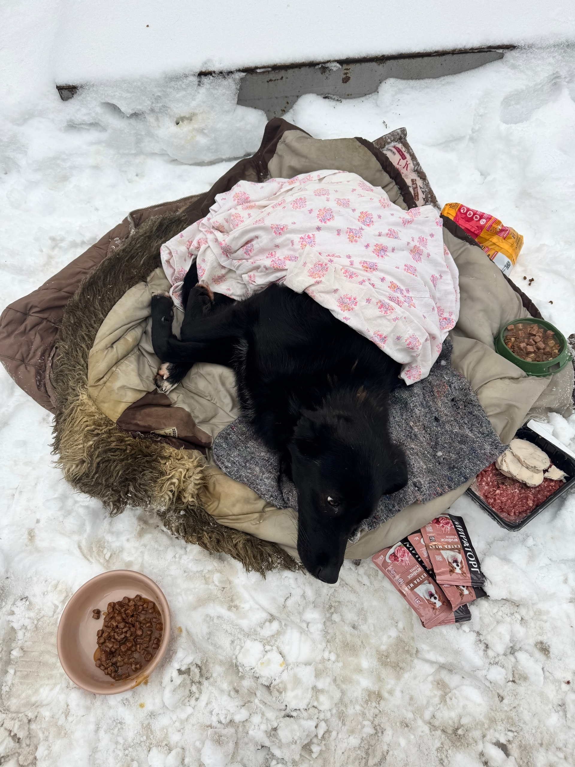 Сбили пса, добрые люди носят куртки, кормят. (но пес очень плохо ест).