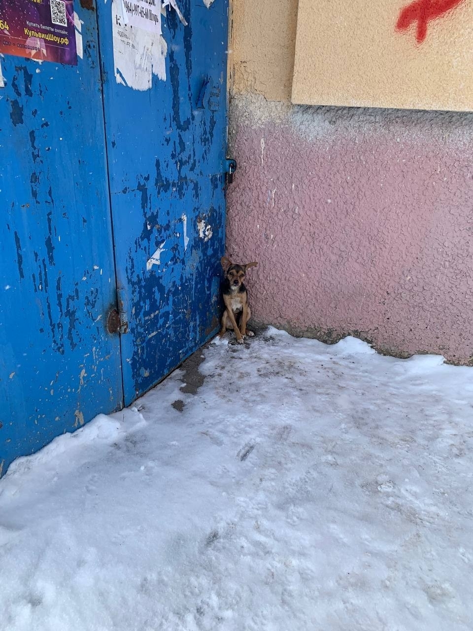 Собачка сильно замёрзла, трясется, надеюсь хоть немного отогреется в подъезде. Если у кого есть возможность взять на передержку – откликнитесь, пожалуйста. У меня такой возможности нет, к сожалению (дома кошка и маленький ребёнок)