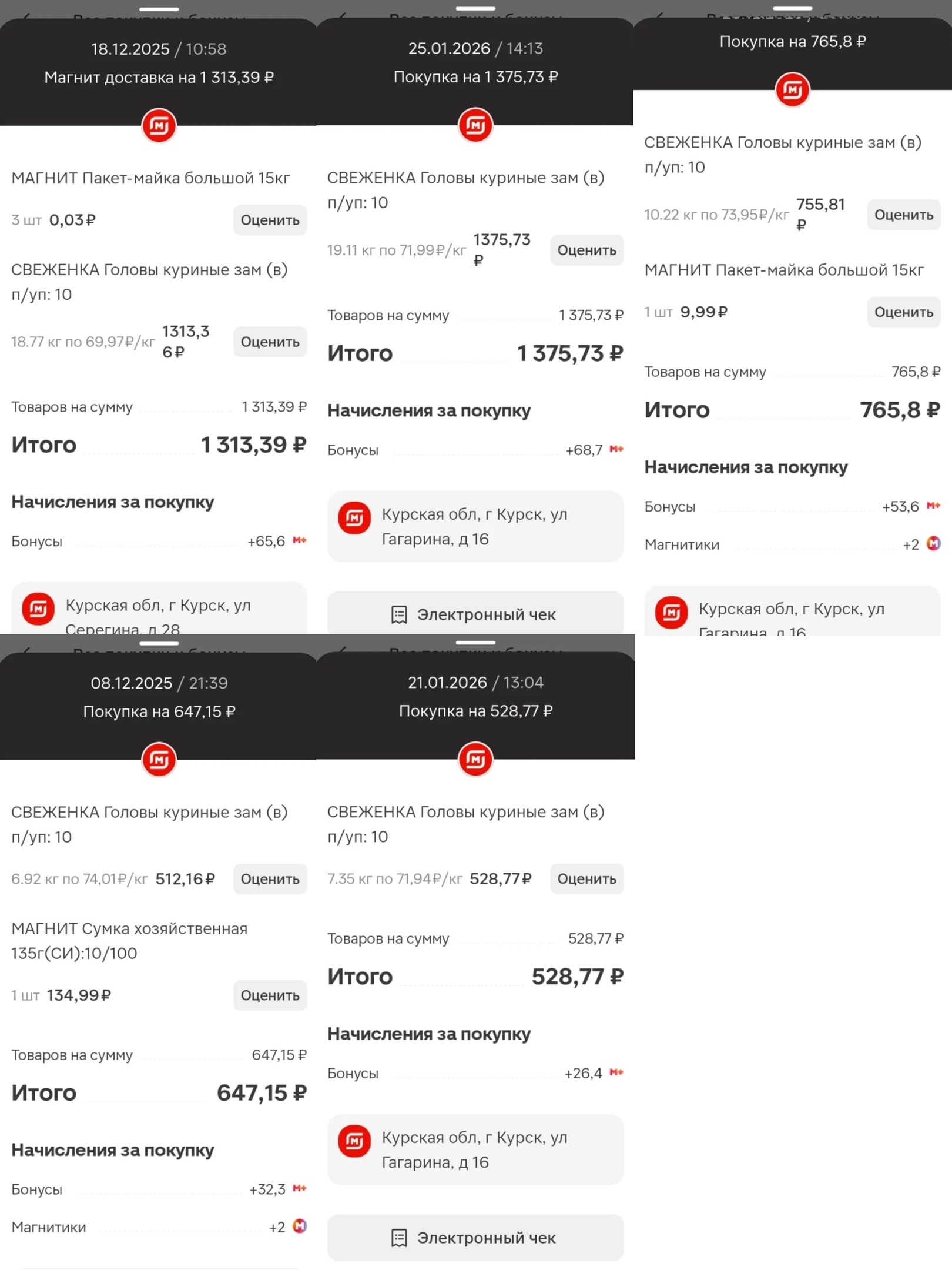 Курск 👋 Друзья, большая просьба о финансовой помощи. У волонтёра Татьяны ([https://vk.com/id679461037|ВКонтакте — Ольга Фралова]) огромные расходы на подопечных. Смотрите изображения, на чеках указаны суммы (10750, 5400, 3400, несколько по 1300, много 500—1000). Татьяна [https://vk.com/wall266026175_106897|кормит собак из Гуторво, но это только вершина айсберга], у неё на попечении много бездомышей на улице и на передержке, которых нужно кормить и лечить (и стерилизовать новеньких), а также Татьяна помогает другим неравнодушным людям, например, пенсионерке из Обояни (смотрите видео).