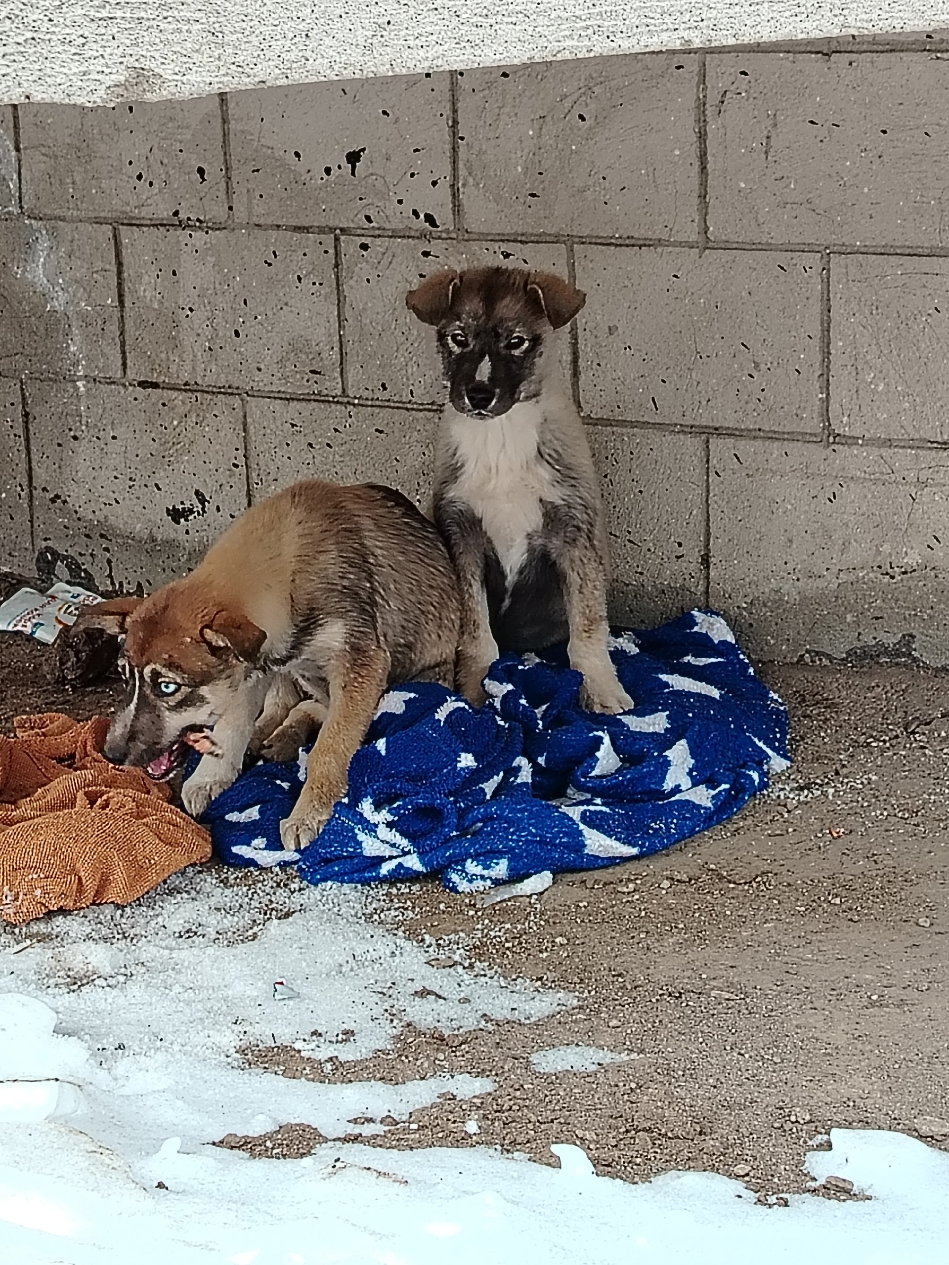 Сегодня на ул. Орловская появились два щенка. От страха малыши забились под балкон многоэтажного дома. Сидят дрожат, как осиновые листочки. Дрожат и от холода, и от страха. Местные жители вынесли им плед. Но на таком морозе от него точно теплее не станет. Еда замёрзла и превратилась в кусок льда, но напуганные малыши даже не притронулись к ней.