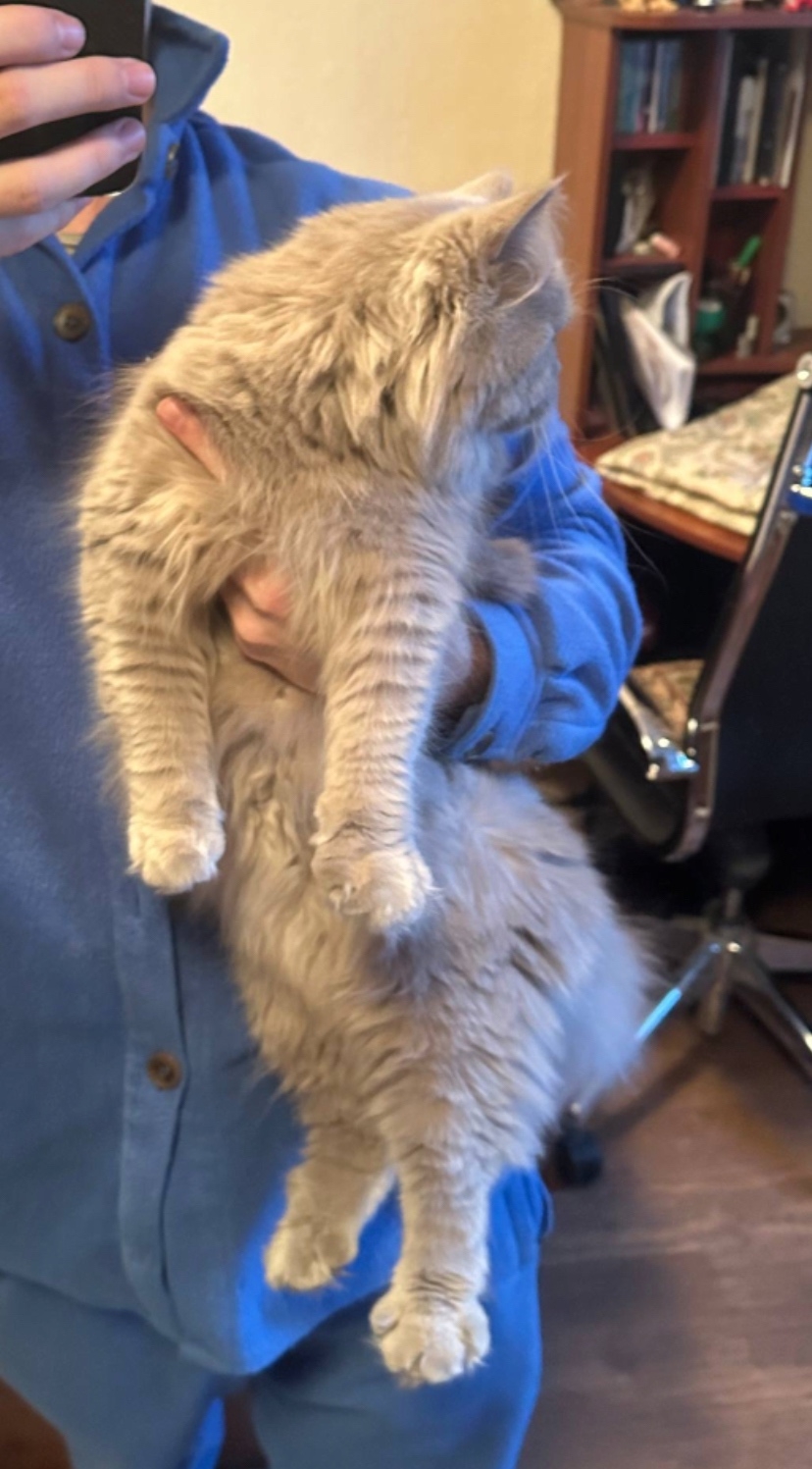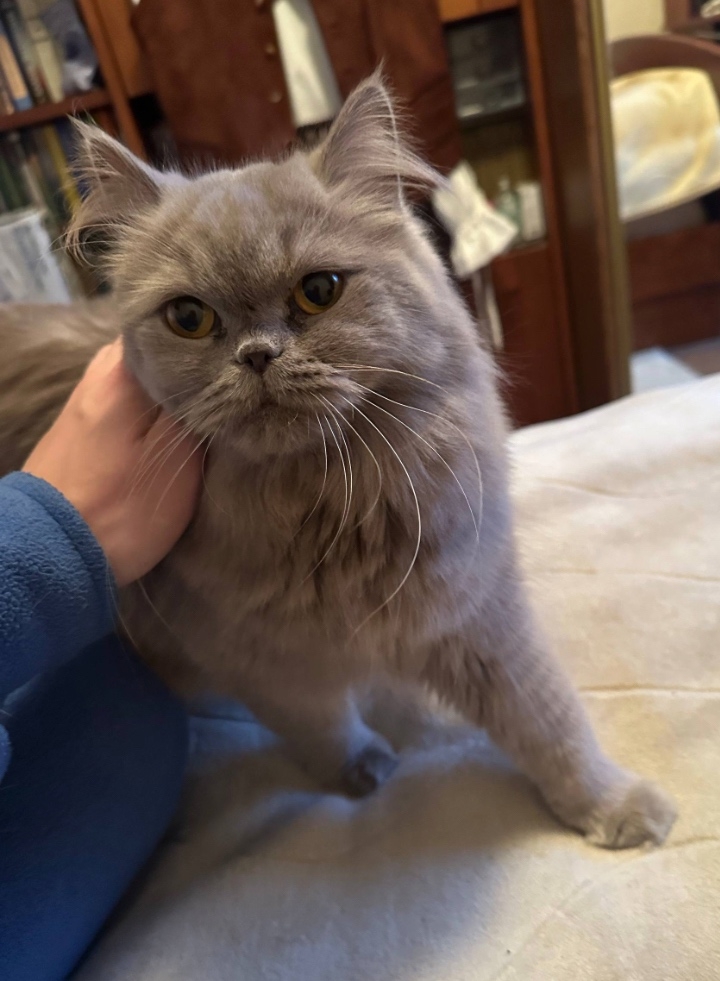 Город Железнодорожный, 13 декабря в Пестовском парке была найдена британская длинношерстная голубая кошка. Явно потеряшка, ластится к людям, мяукает, просится на руки.