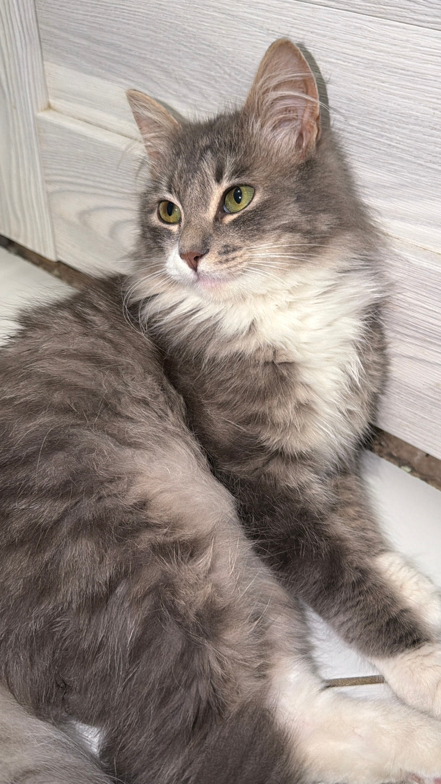 Ласковый мальчик, любит курлыкать как голубь, игривый, хорошо находит общий язык как с котиками так и с собачками. Быстро адаптируется. Активный, веселый, молодой подросток!