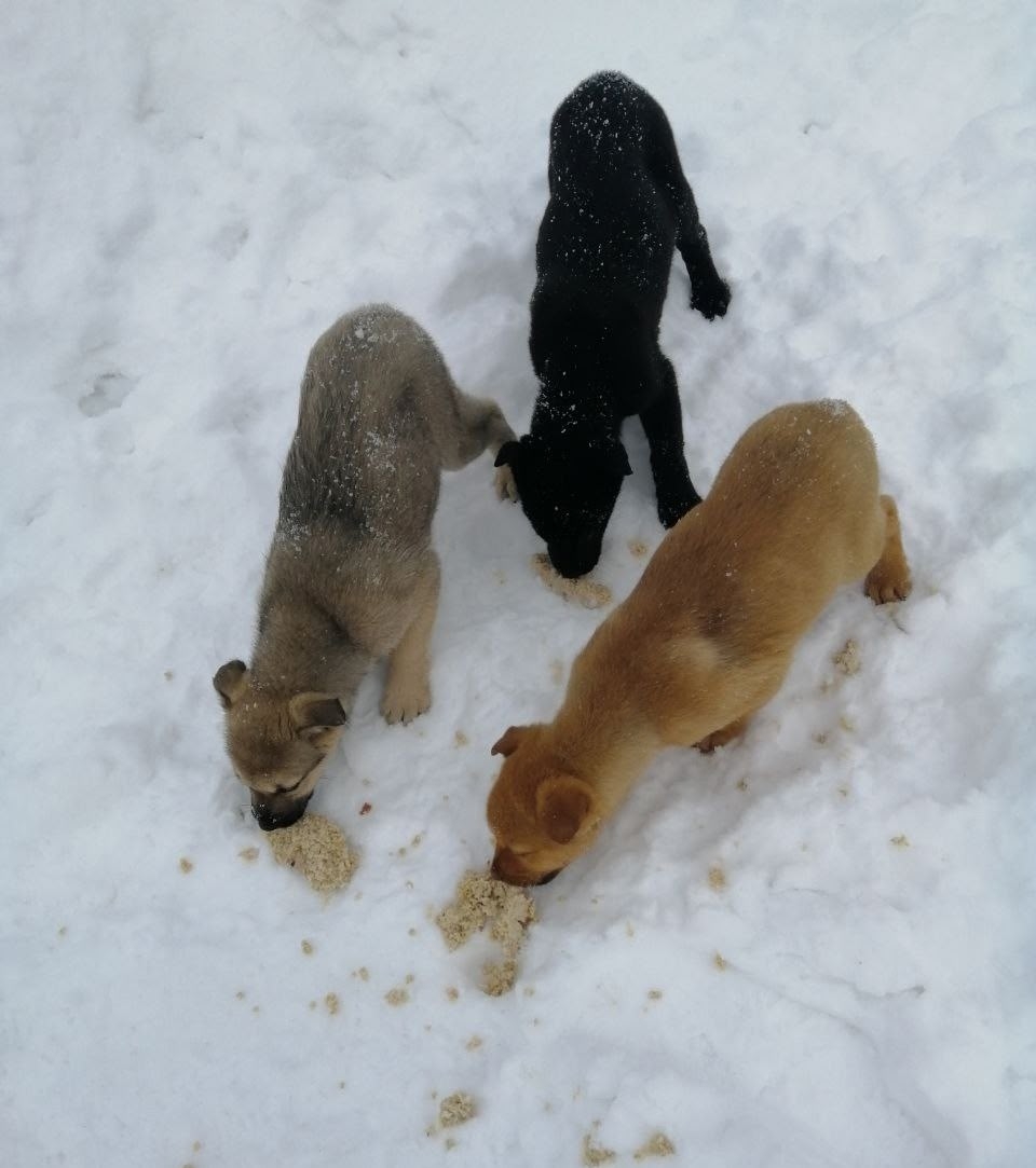 Щенки выживают на дачах, примерно месяца два им. Их обнаружили недели 2 назад. Поначалу очень боялись, в этот раз только ближе подошли.
